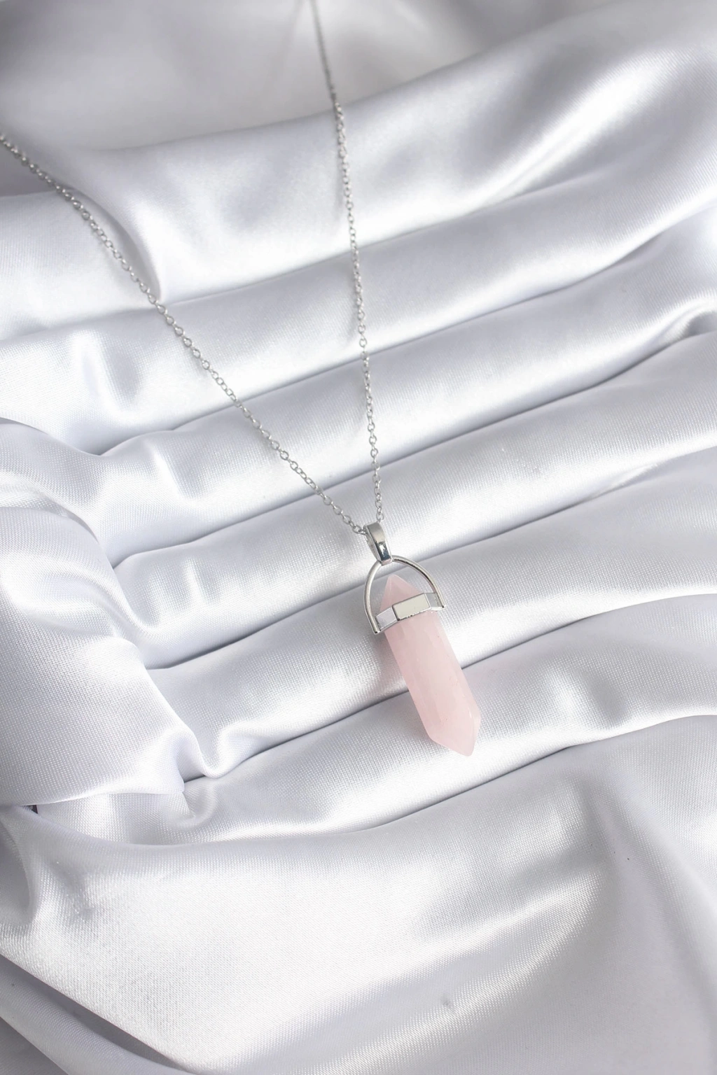 316L Çelik Gümüş Renk Pembe Taşlı Kadın Kolye - TJ-BKO8244