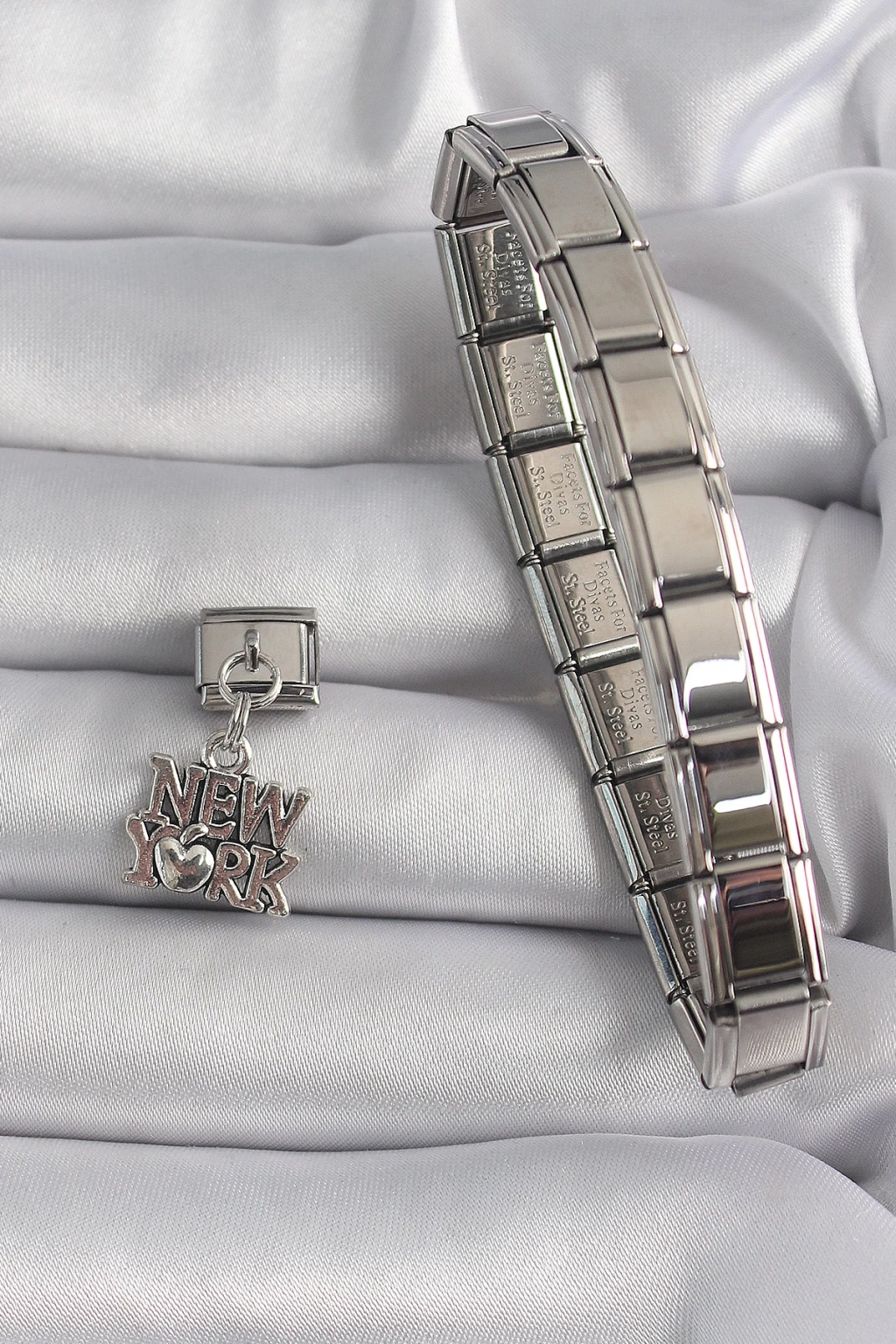316L Çelik Gümüş Renk Sallantı New York Yazı Model Nomination Charm - TJ-BC1120