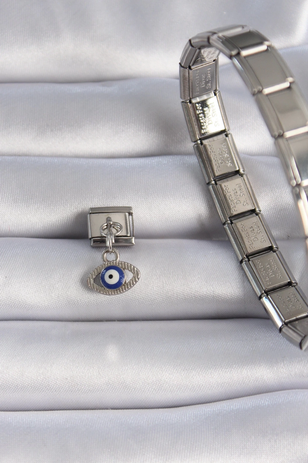316L Çelik Gümüş Renk Sallantılı Göz Figür Nazar Boncuk Detay Nomination Charm - TJ-BC1044