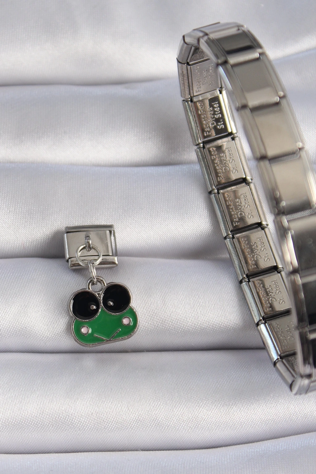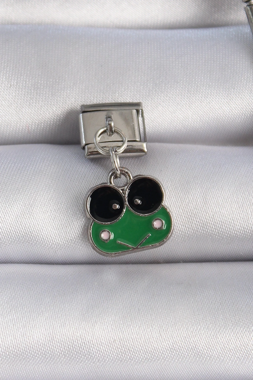 316L Çelik Gümüş Renk Sallantılı Yeşil Kurbağa Figür Nomination Charm - TJ-BC1071