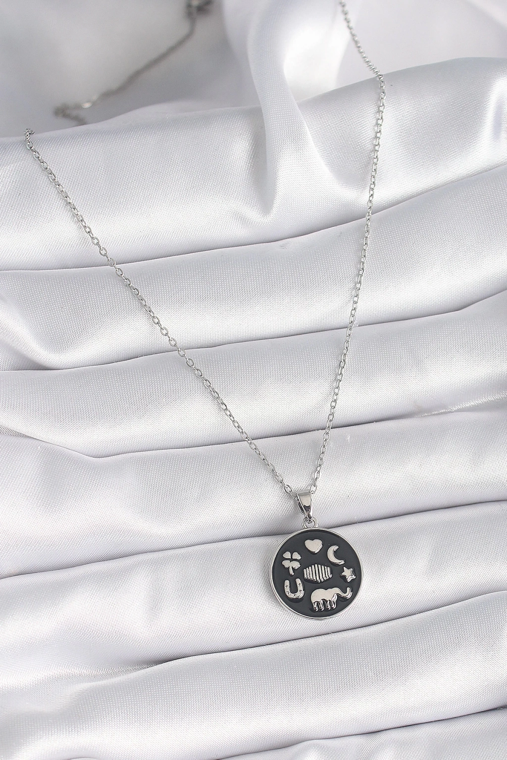 316L Çelik Gümüş Renk Siyah Renk Şans Kolyesi - TJ-BKO9546