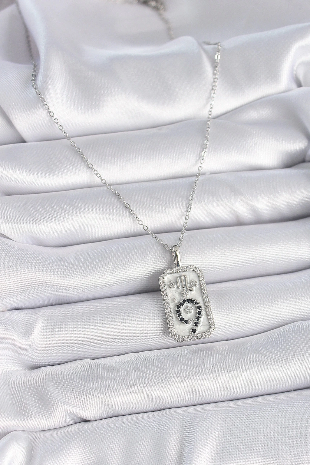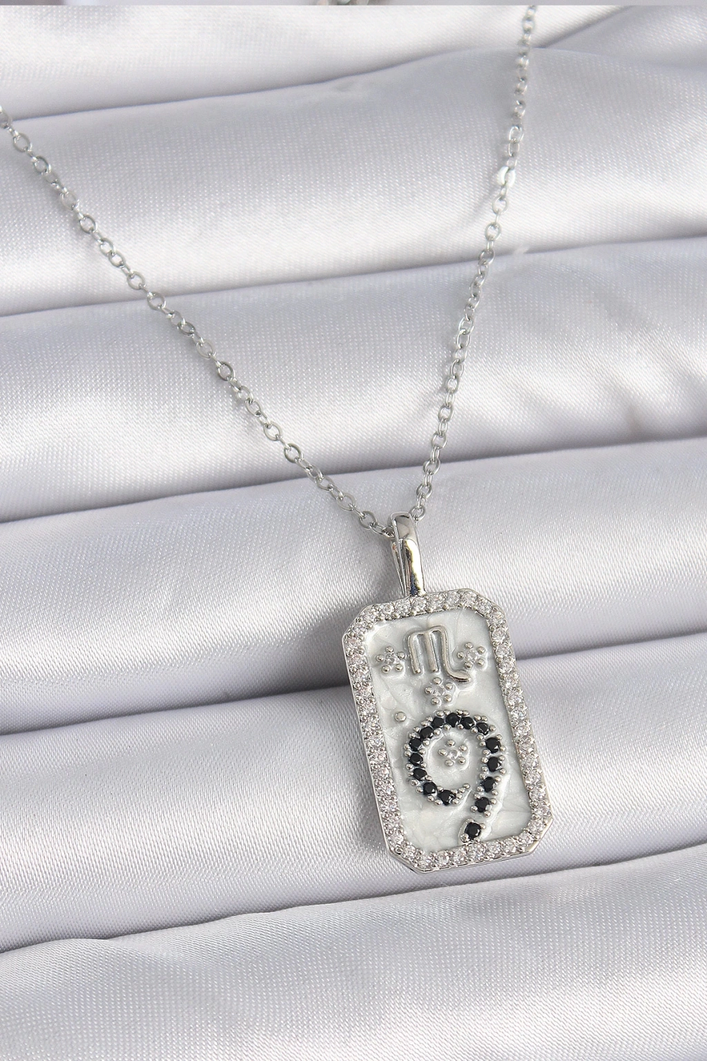 316L Çelik Gümüş Renk Zincir Akrep Burcu Zirkon Taşlı Kadın Kolye - TJ-BKO9453