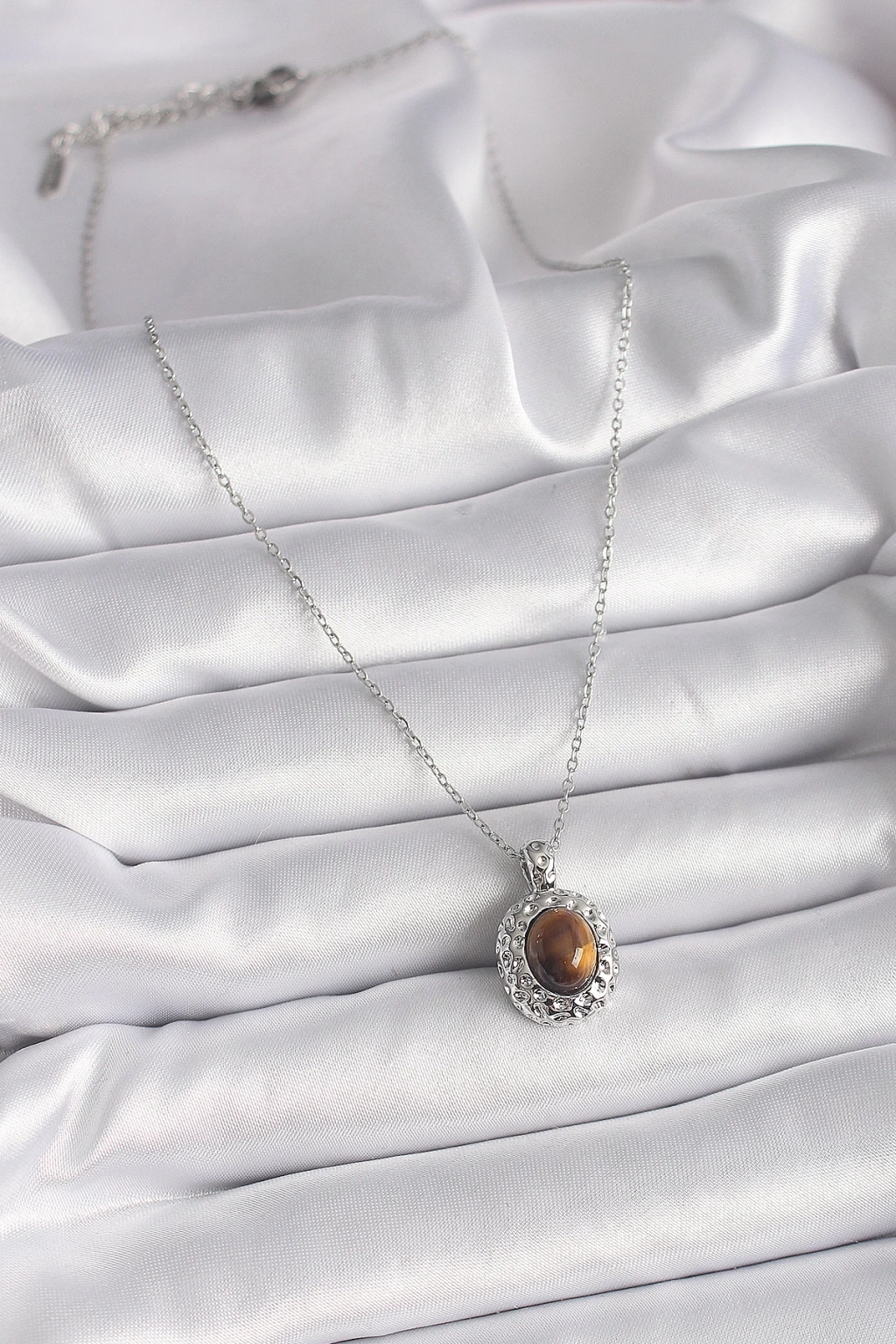 316L Çelik Gümüş Renk Zincir Kehribar Boncuk Model Kadın Kolye - TJ-BKO9491