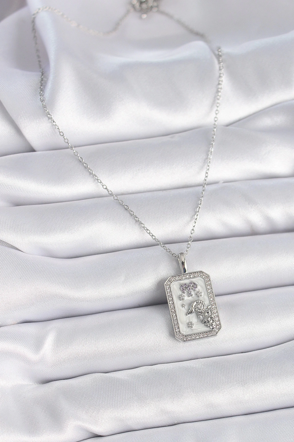 316L Çelik Gümüş Renk Zincir Koç Burcu Zirkon Taşlı Kadın Kolye - TJ-BKO9452