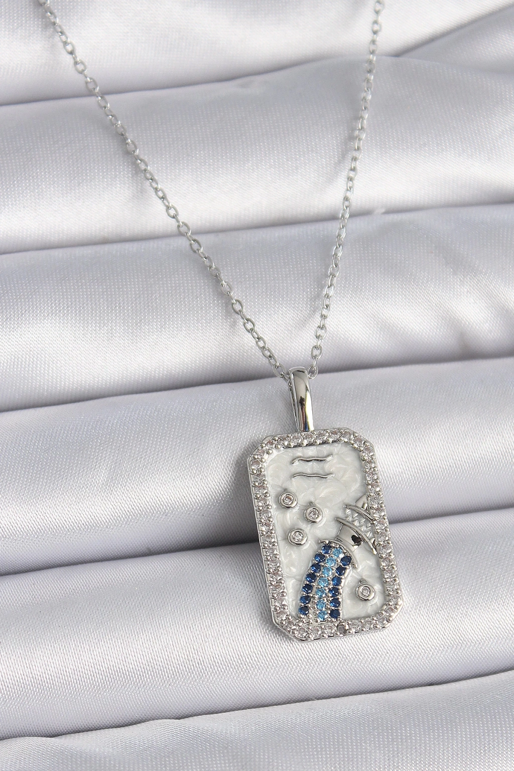 316L Çelik Gümüş Renk Zincir Kova Burcu Zirkon Taşlı Kadın Kolye - TJ-BKO9447