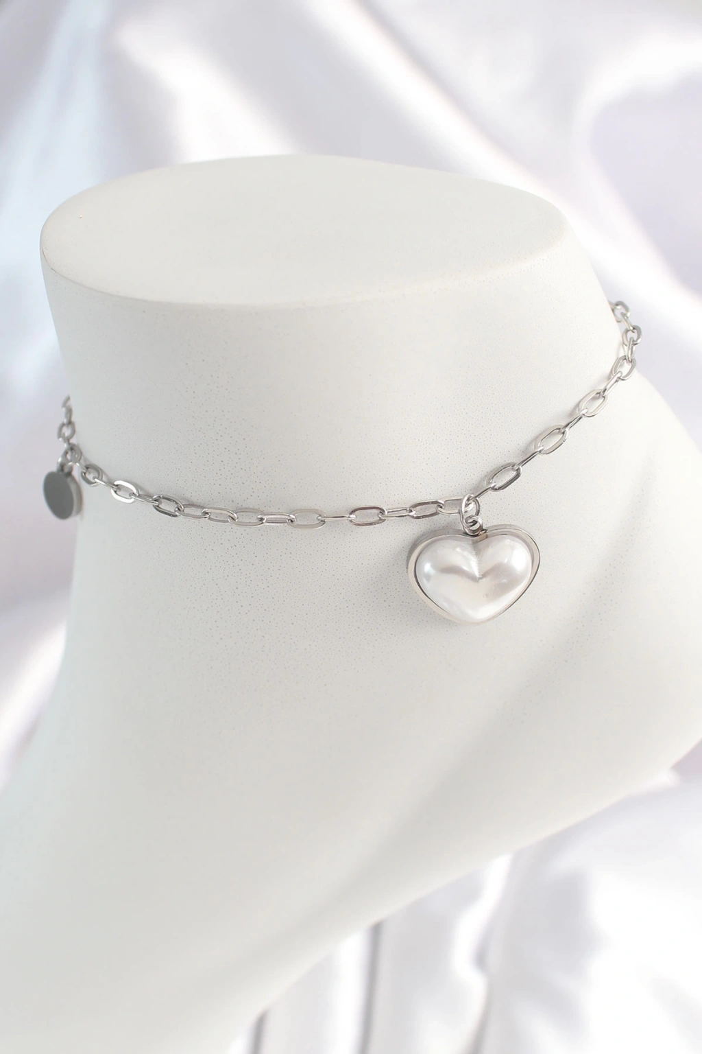 316L Çelik Gümüş Renk Zincir Model 3D Kalp Beyaz Kalp Figür Kadın HalHal - TJ-HH1529