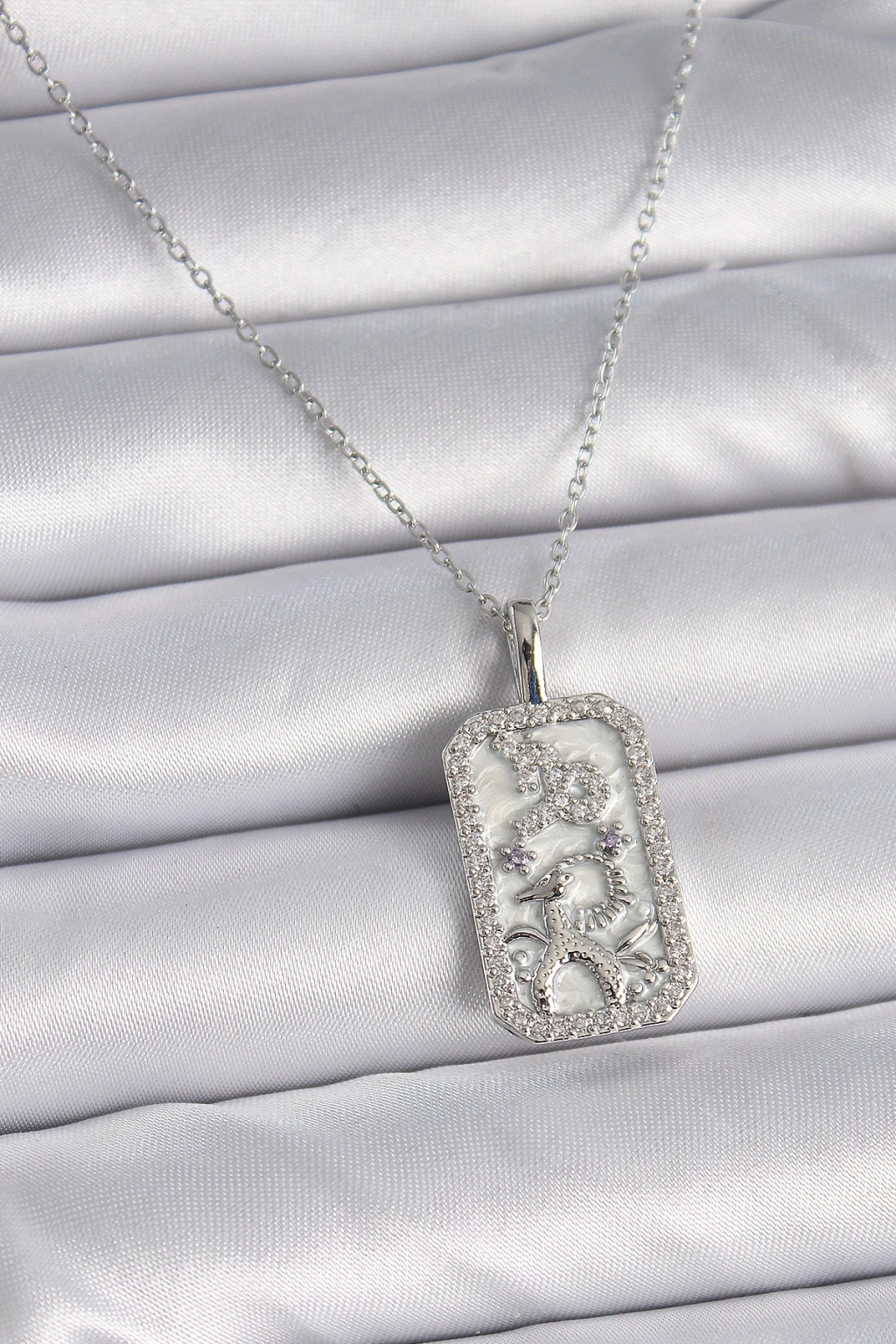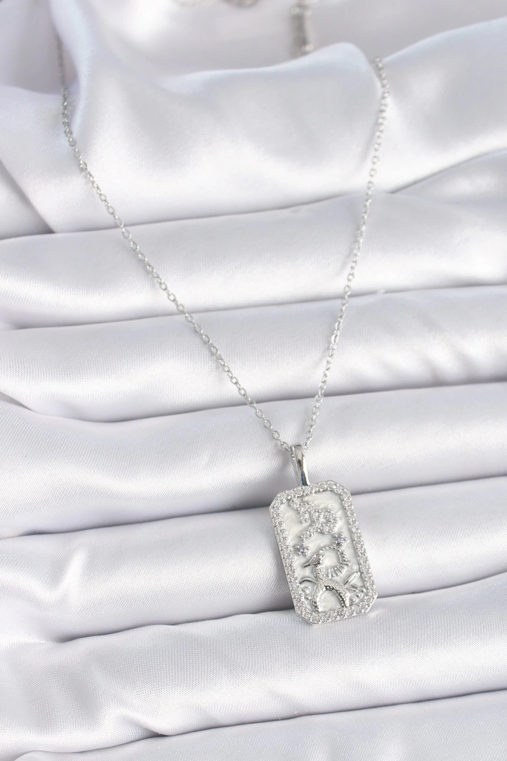 316L Çelik Gümüş Renk Zincir Oğlak Burcu Zirkon Taşlı Kadın Kolye - TJ-BKO9449