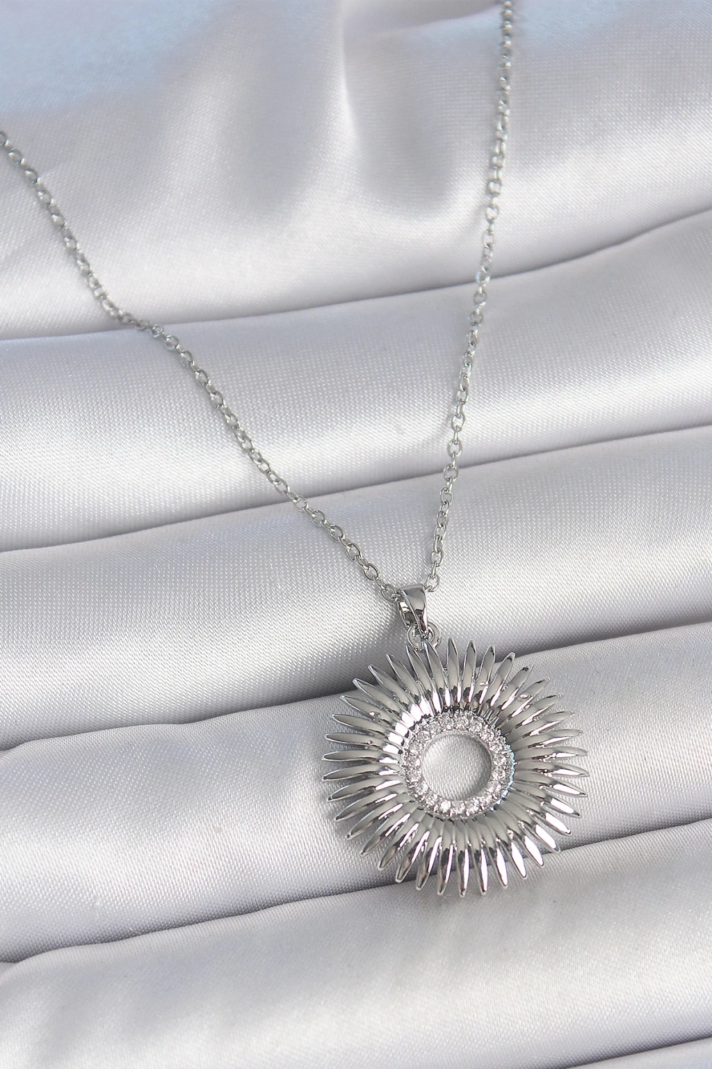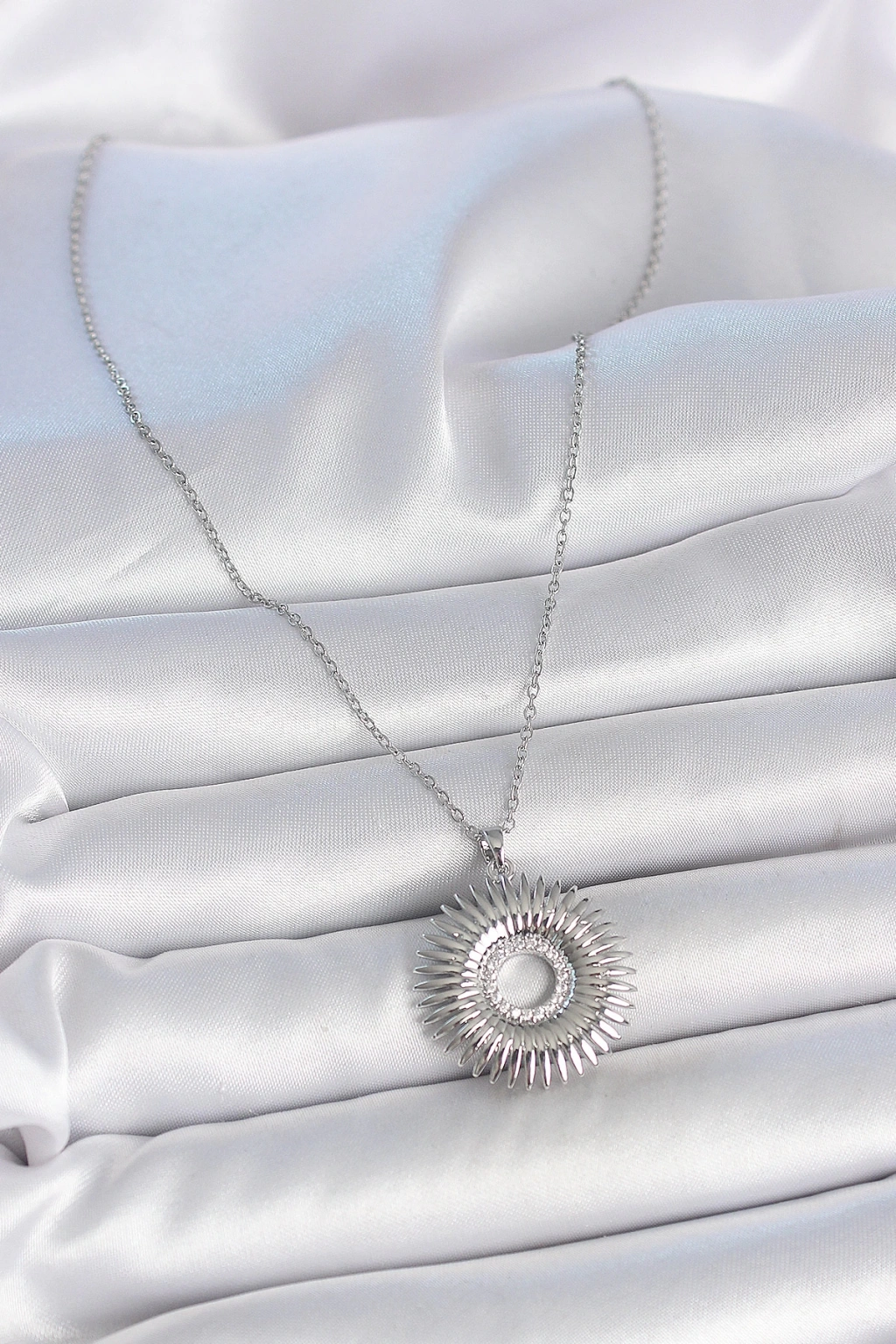 316L Çelik Gümüş Renk Zincir Zirkon Taşlı Nova Yıldız Model Kadın Kolye - TJ-BKO10046