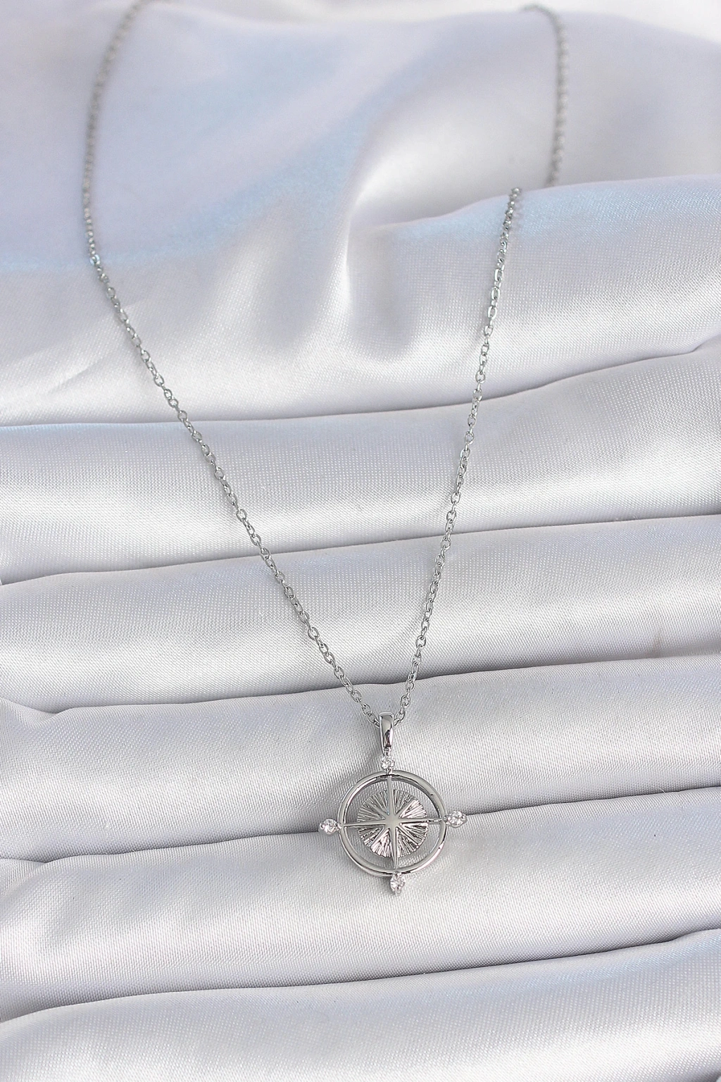 316L Çelik Gümüş Renk Zincir Zirkon Taşlı Pusula Model Kadın Kolye - TJ-BKO10038