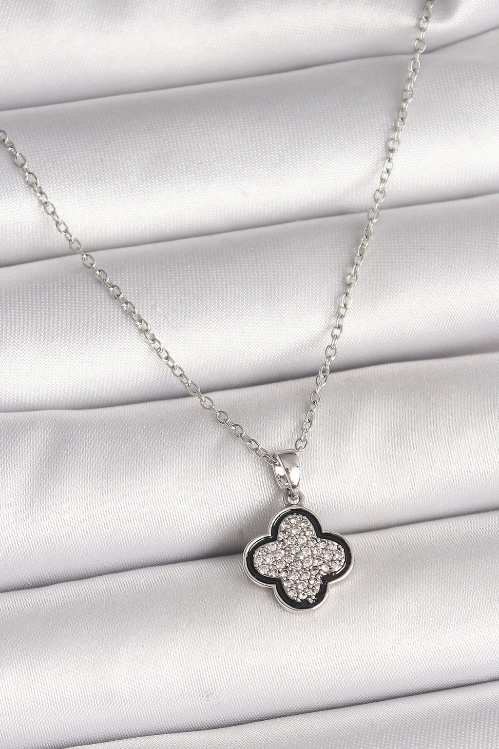 316L Çelik Gümüş Renk Zincir Zirkon Taşlı Yonca Model Kadın Kolye - TJ-BKO9975