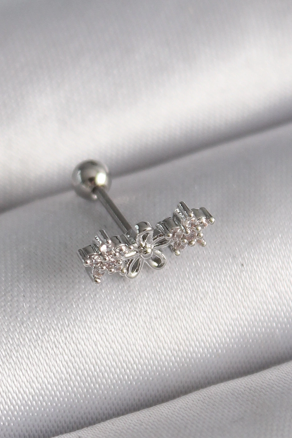 316L Çelik Gümüş Renk Zirkon Taş Detay Beyaz Çiçek Model Tragus Piercing - TJ-PR1357