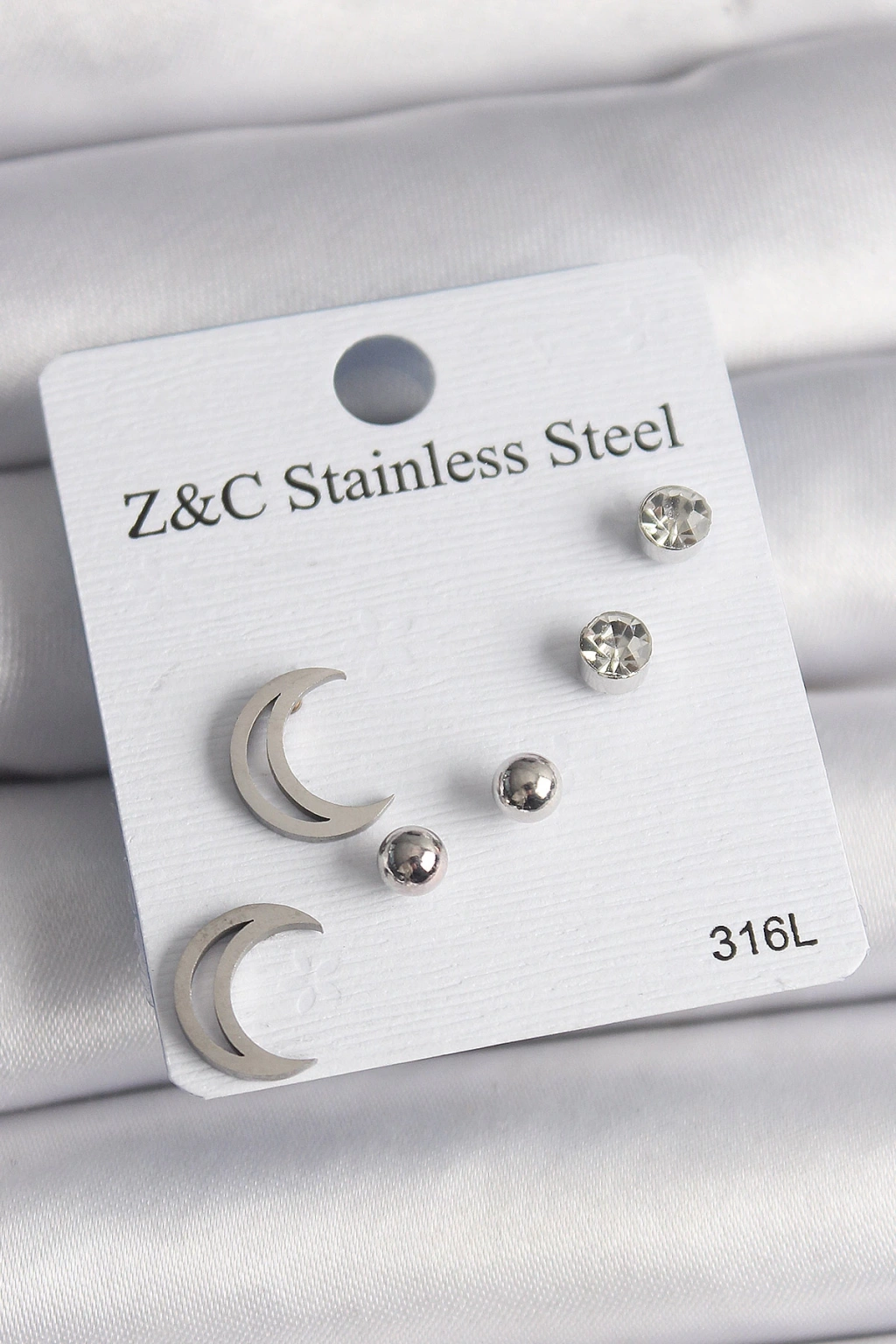 316L Çelik Gümüş Renk Zirkon Taşlı Hilal Model Kadın Küpe Seti - TJ-BKP10010