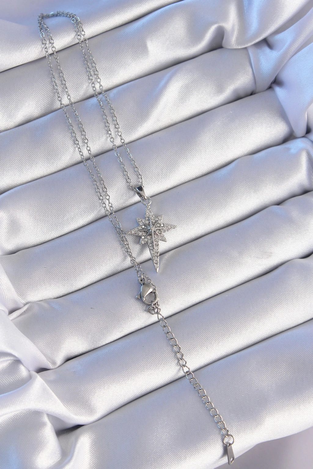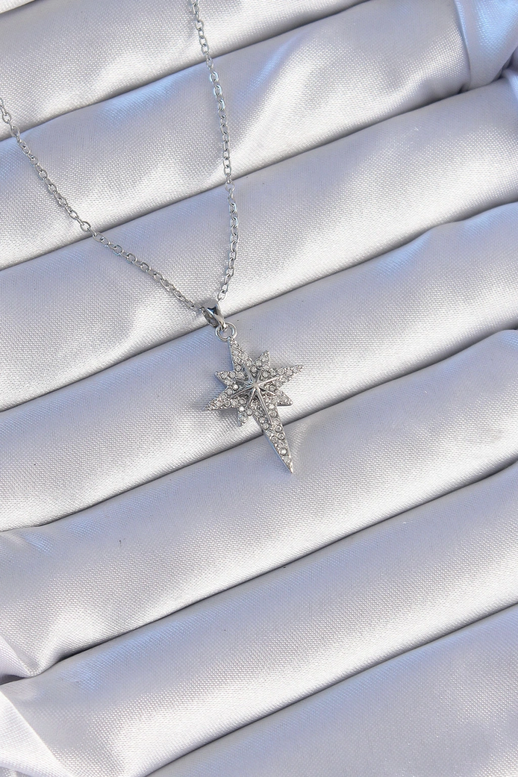 316L Çelik Gümüş Renk Zirkon Taşlı Kutup Yıldızı Model Kolye - TJ-BKO8873