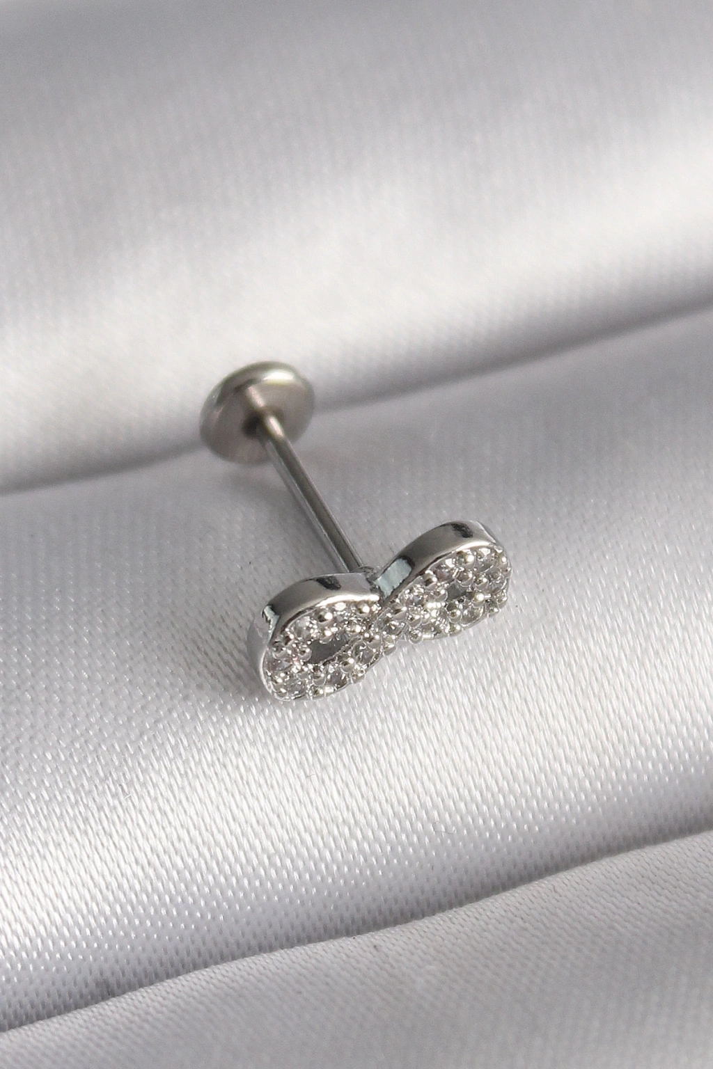 316L Çelik Gümüş Renk Zirkon Taşlı Sonsuzluk Model Tragus Piercing - TJ-PR1345