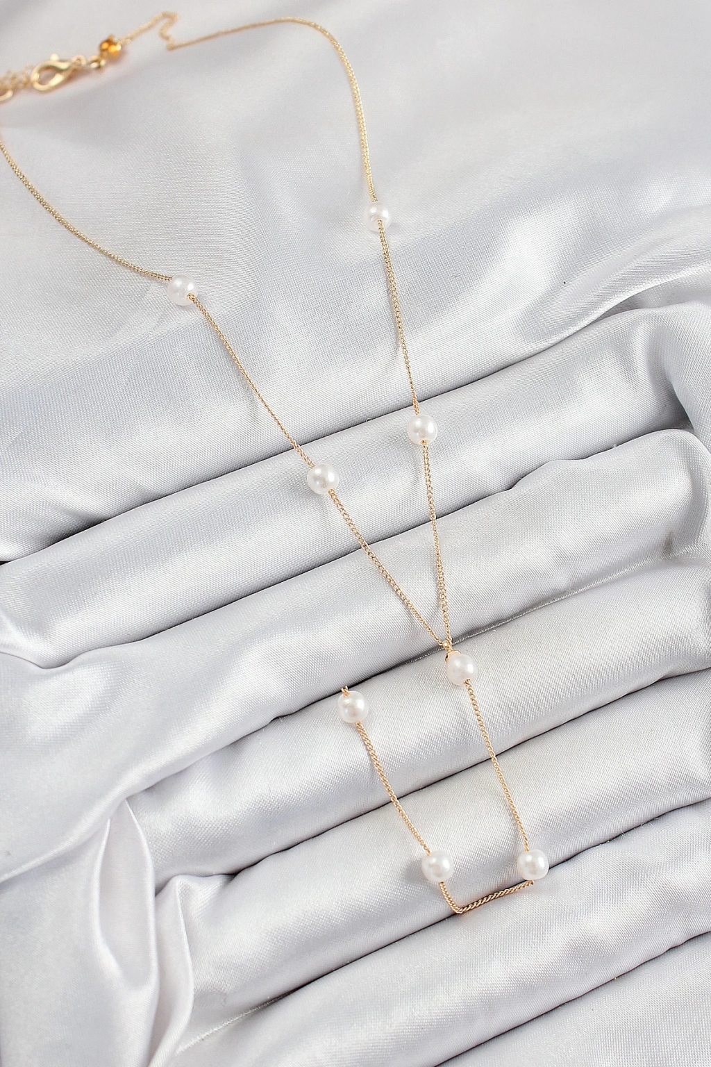 316L Çelik İnci Figürlü Y Model Gold Renk Kadın Kolye - TJ-BKO10340