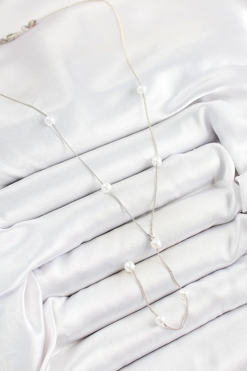 316L Çelik İnci Figürlü Y Model Gümüş Renk Kadın Kolye - TJ-BKO10337