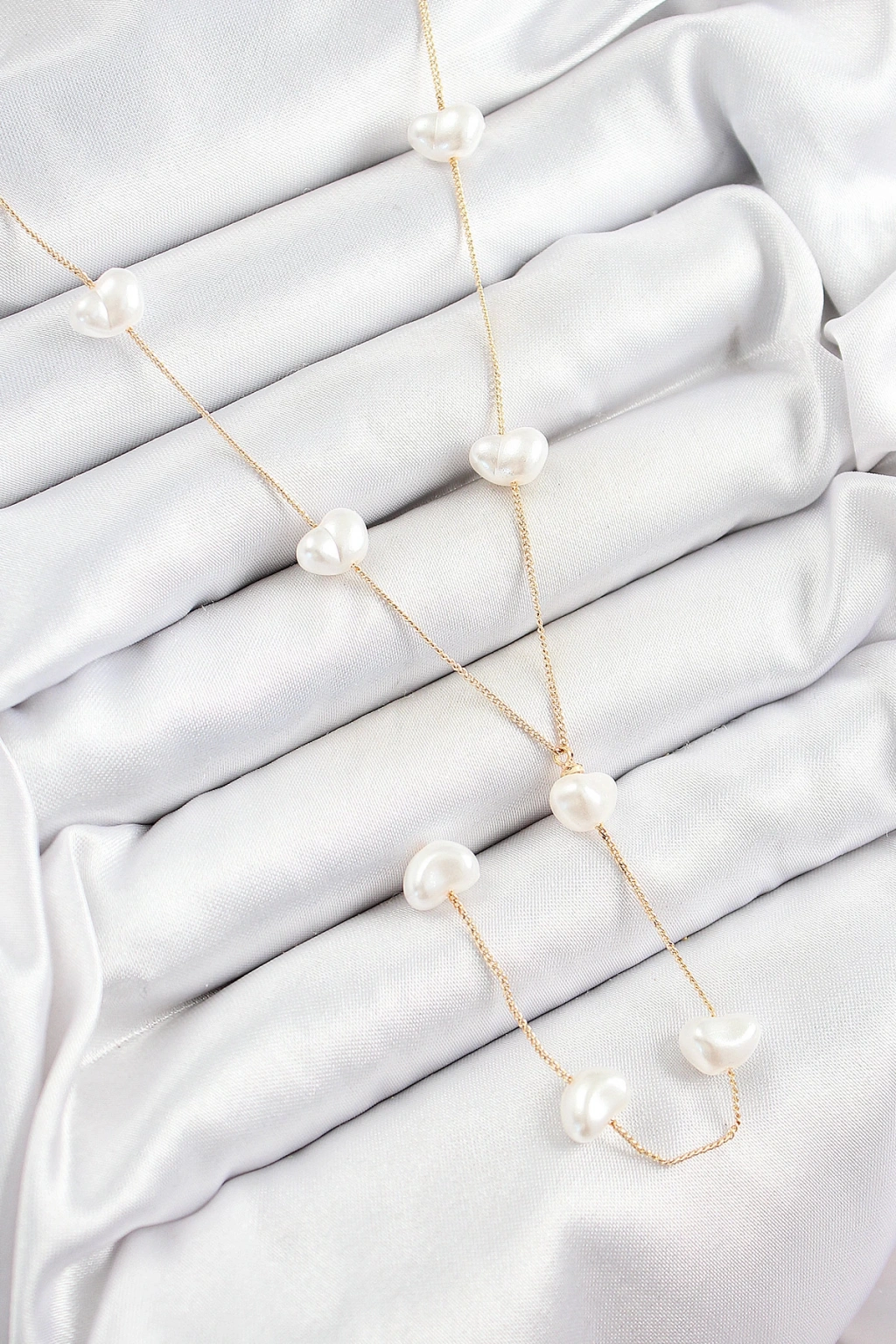 316L Çelik İncili Kalp Figürlü Y Model Gold Renk Kadın Kolye - TJ-BKO10335