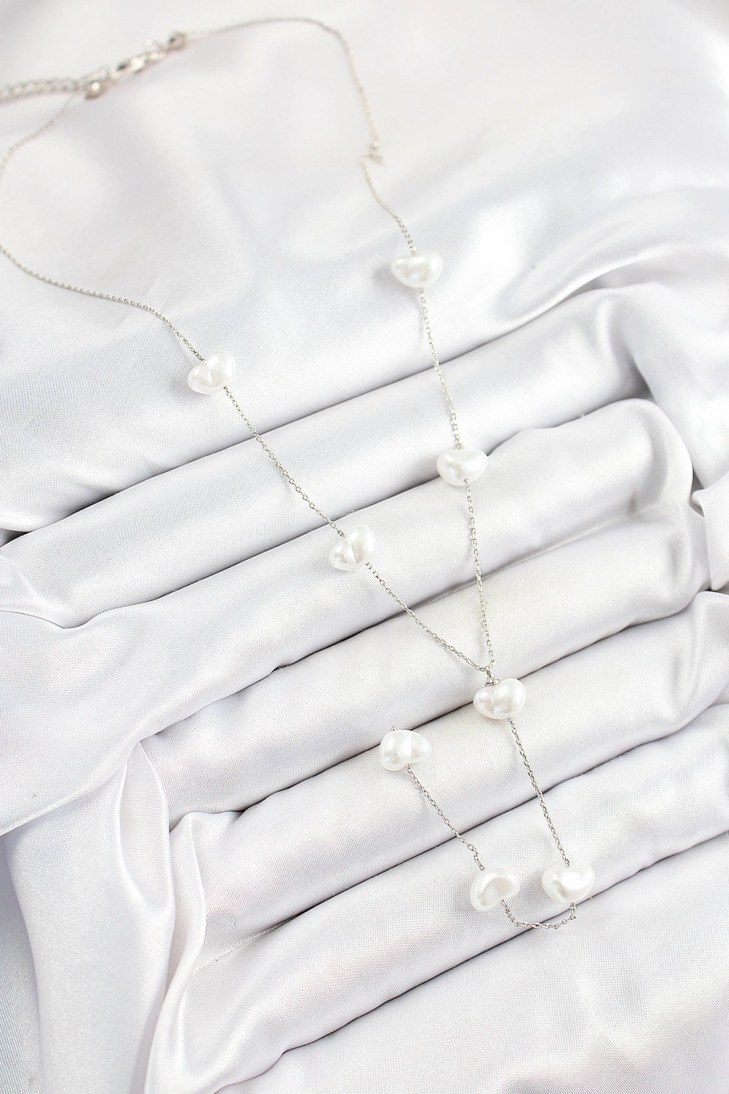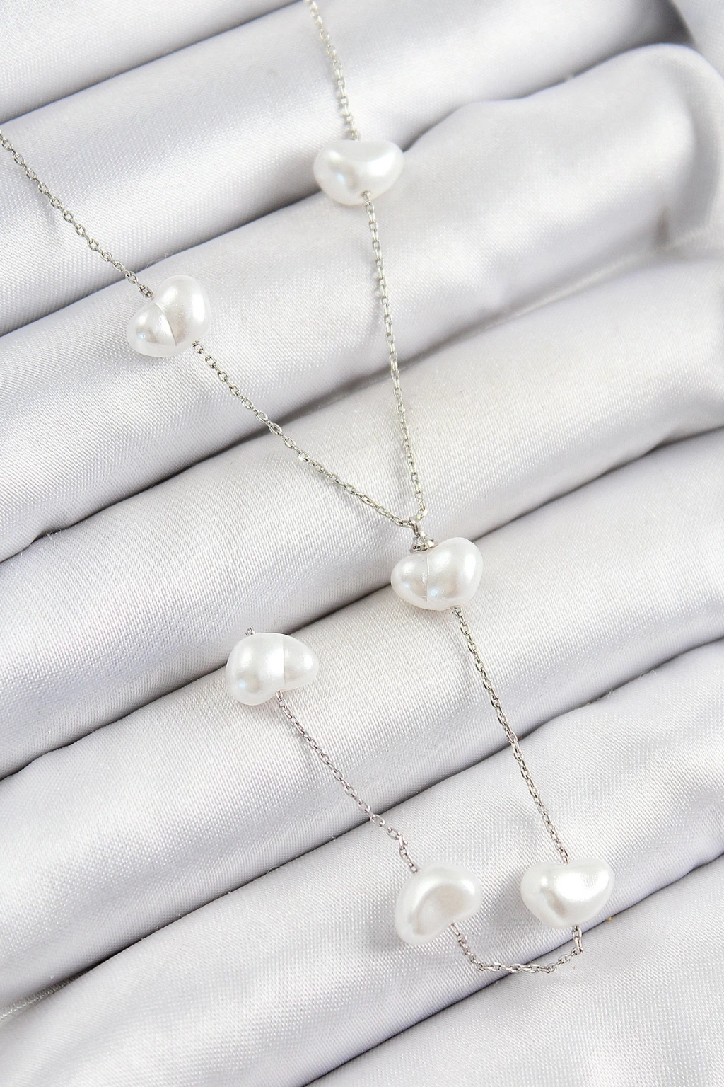 316L Çelik İncili Kalp Figürlü Y Model Gümüş Renk Kadın Kolye - TJ-BKO10336