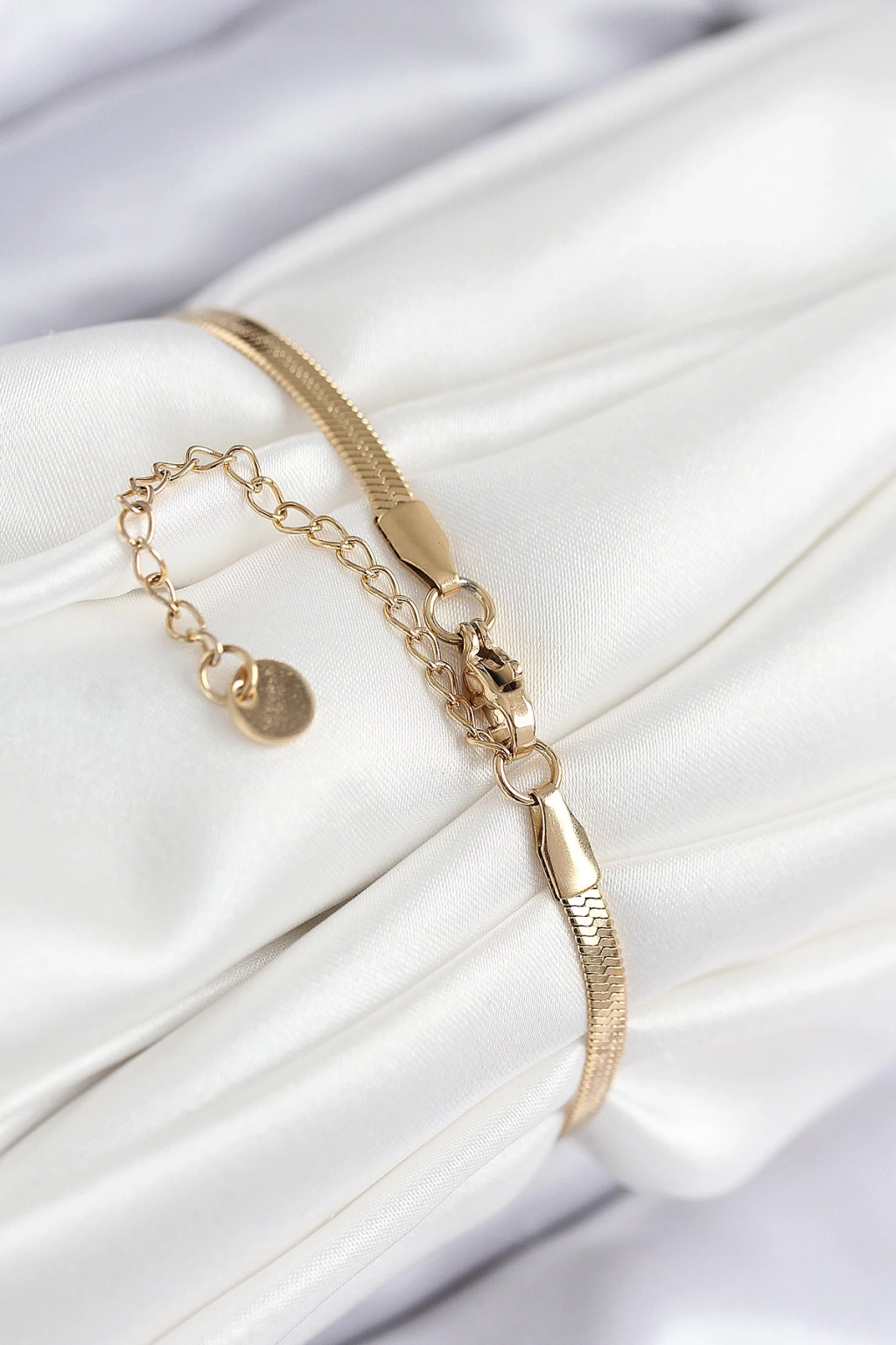 316L Çelik Nazar Boncuk Detaylı Yonca Model İtalyan Zincir Gold Renk Kadın Bileklik - TJ-BB7826