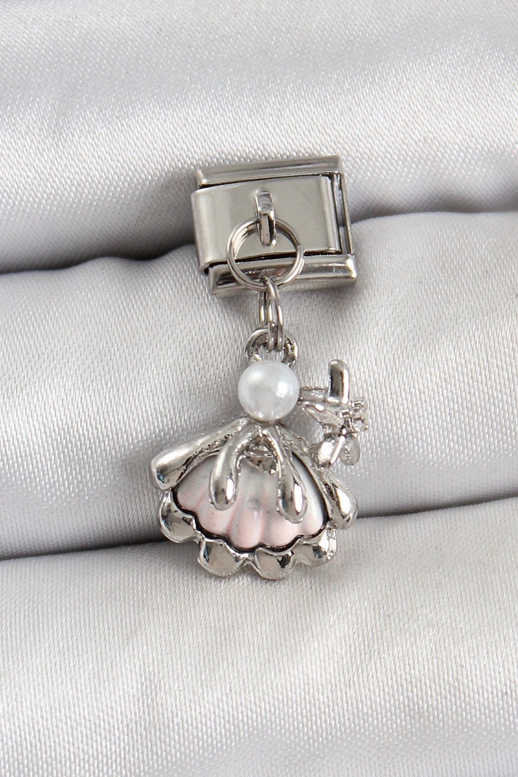 316L Çelik Sallantılı İnci Detaylı İstiridye Model Gümüş Renk Nomination Charm - TJ-BC1453