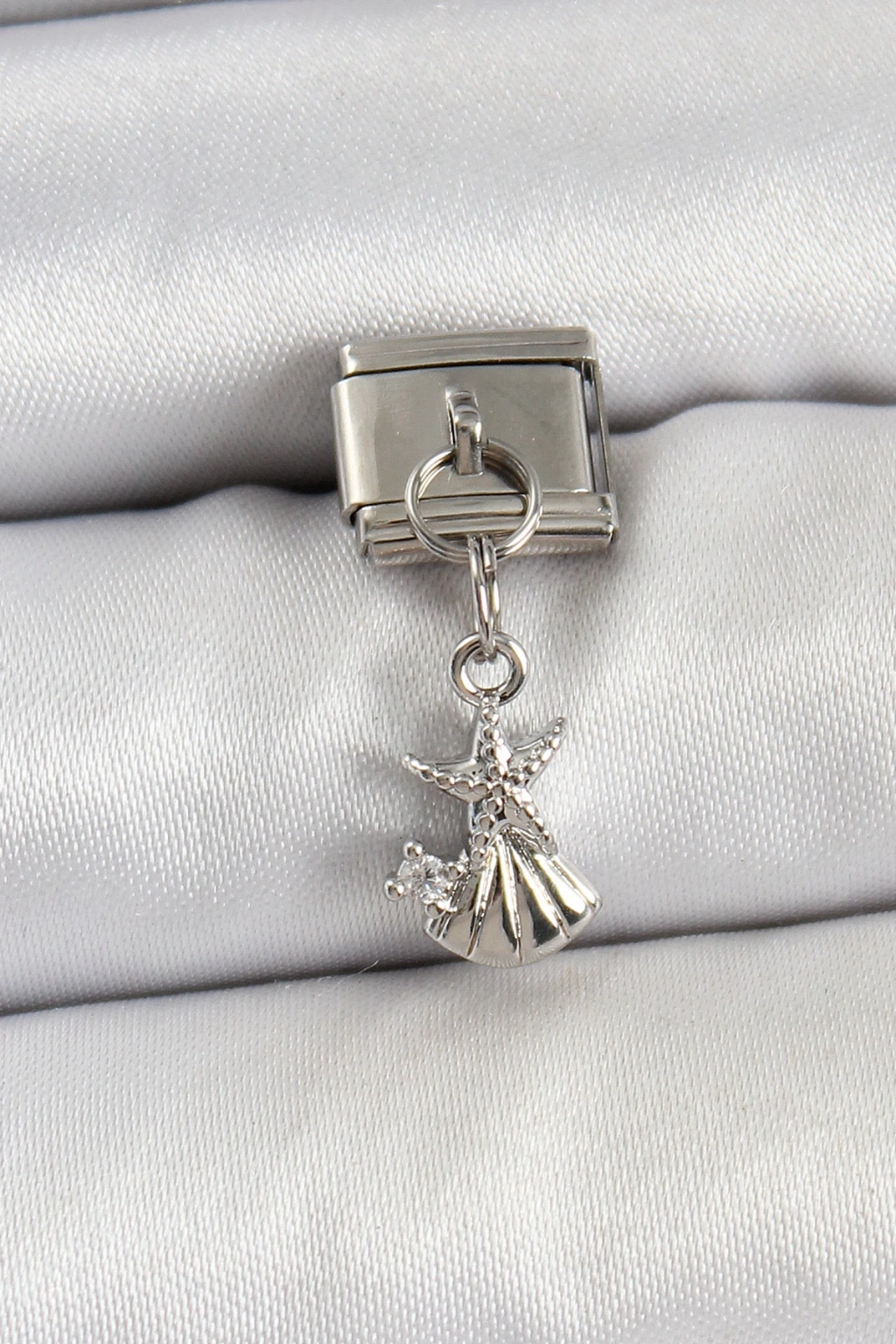 316L Çelik Sallantılı Zirkon Taşlı Deniz Yıldızı Ve İstiridye Model Gümüş Renk Nomination Charm - TJ-BC1454