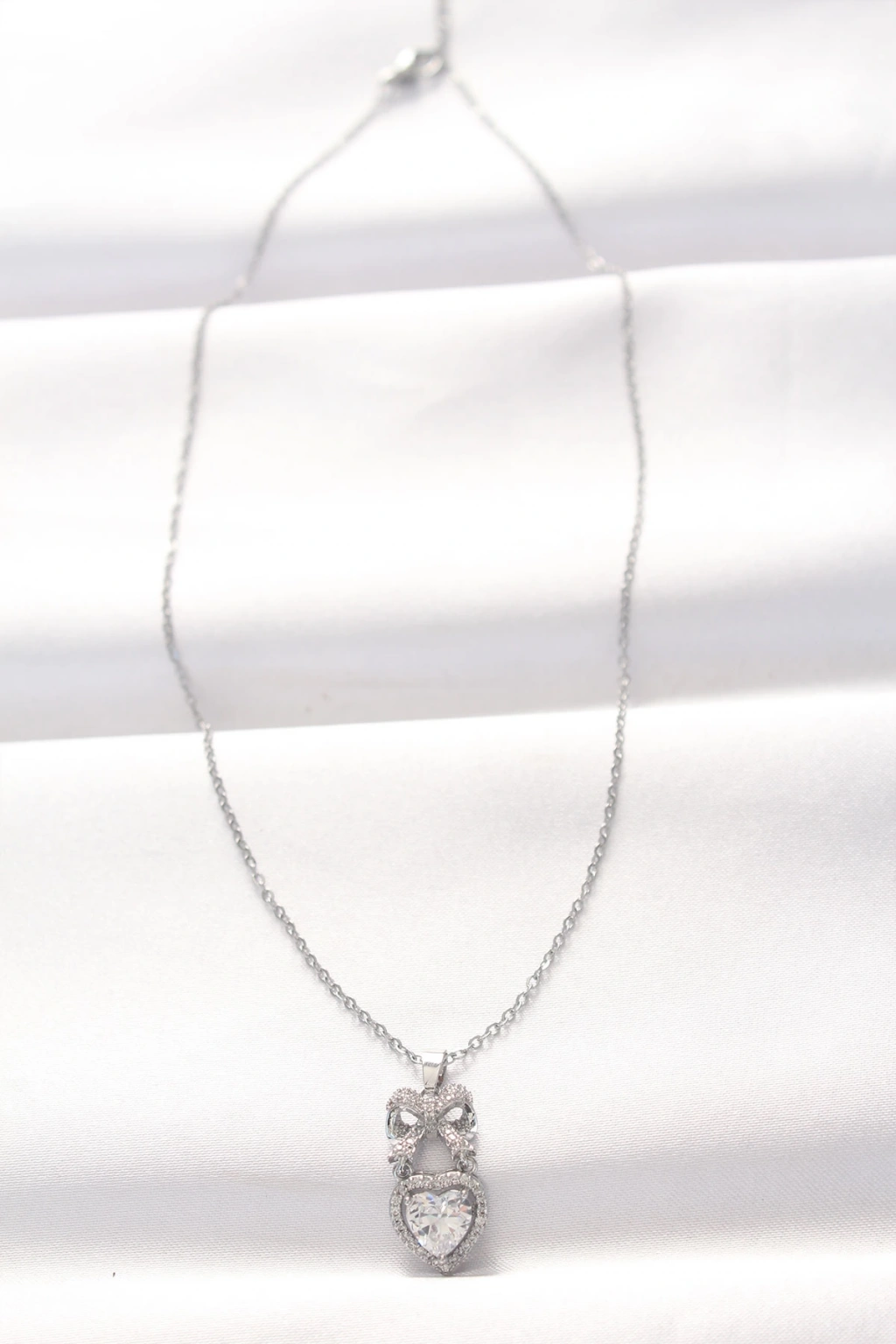 316L Çelik Silver Renk Zirkon Taşlı Kalpli Fiyonk Kolye - TJ-BKO8519