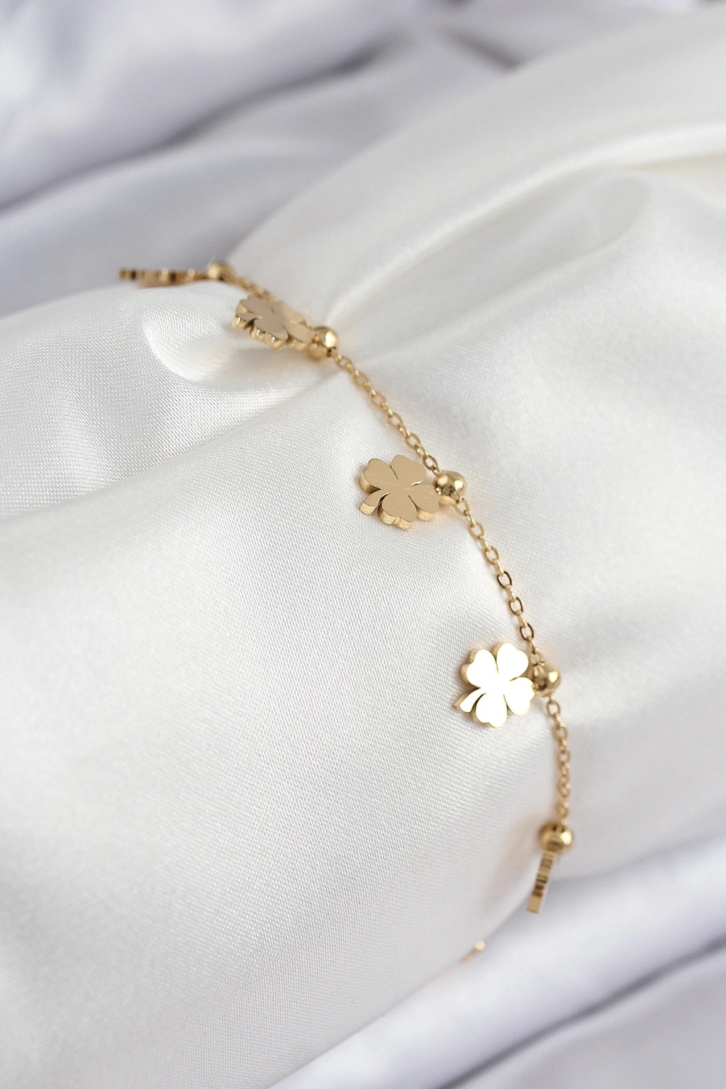 316L Çelik Sıralı Yonca Model Gold Renk Kadın Bileklik - TJ-BB7824