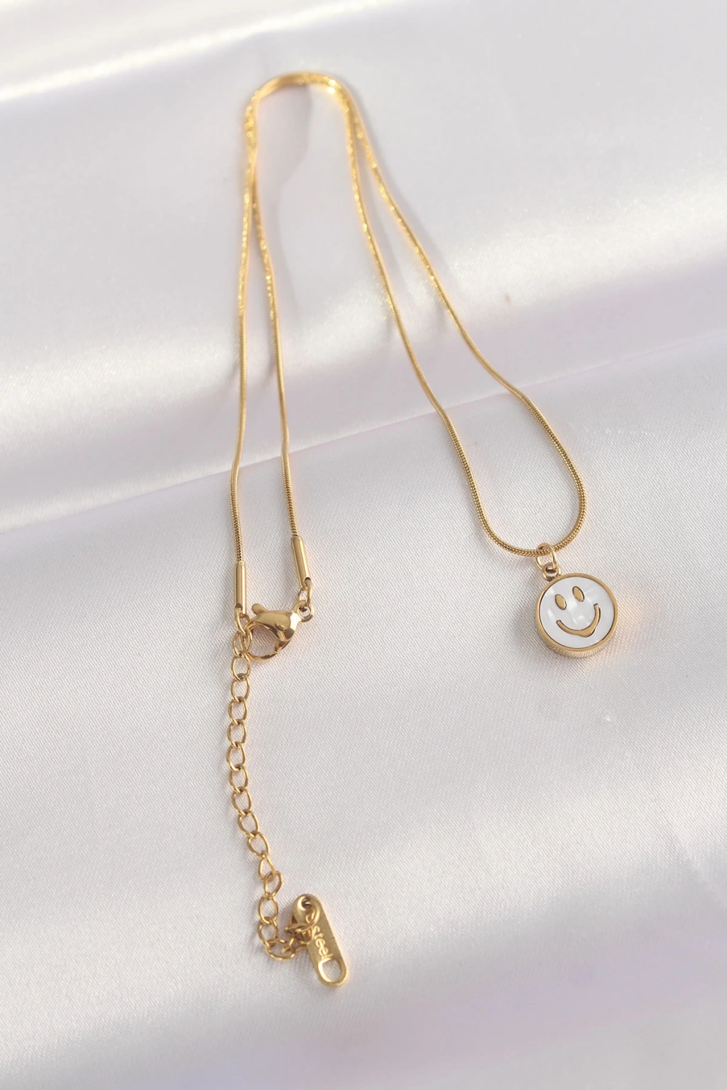 316L Çelik Zincir Altın Renk Mermer Desenli Minimal Smile Kolye - TJ-BKO8672