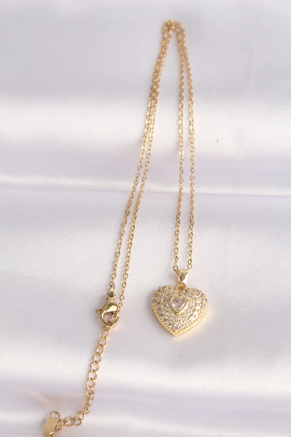 316L Çelik Zincir Altın Renk Zirkon Taşlı Kalp Kolye - TJ-BKO8624