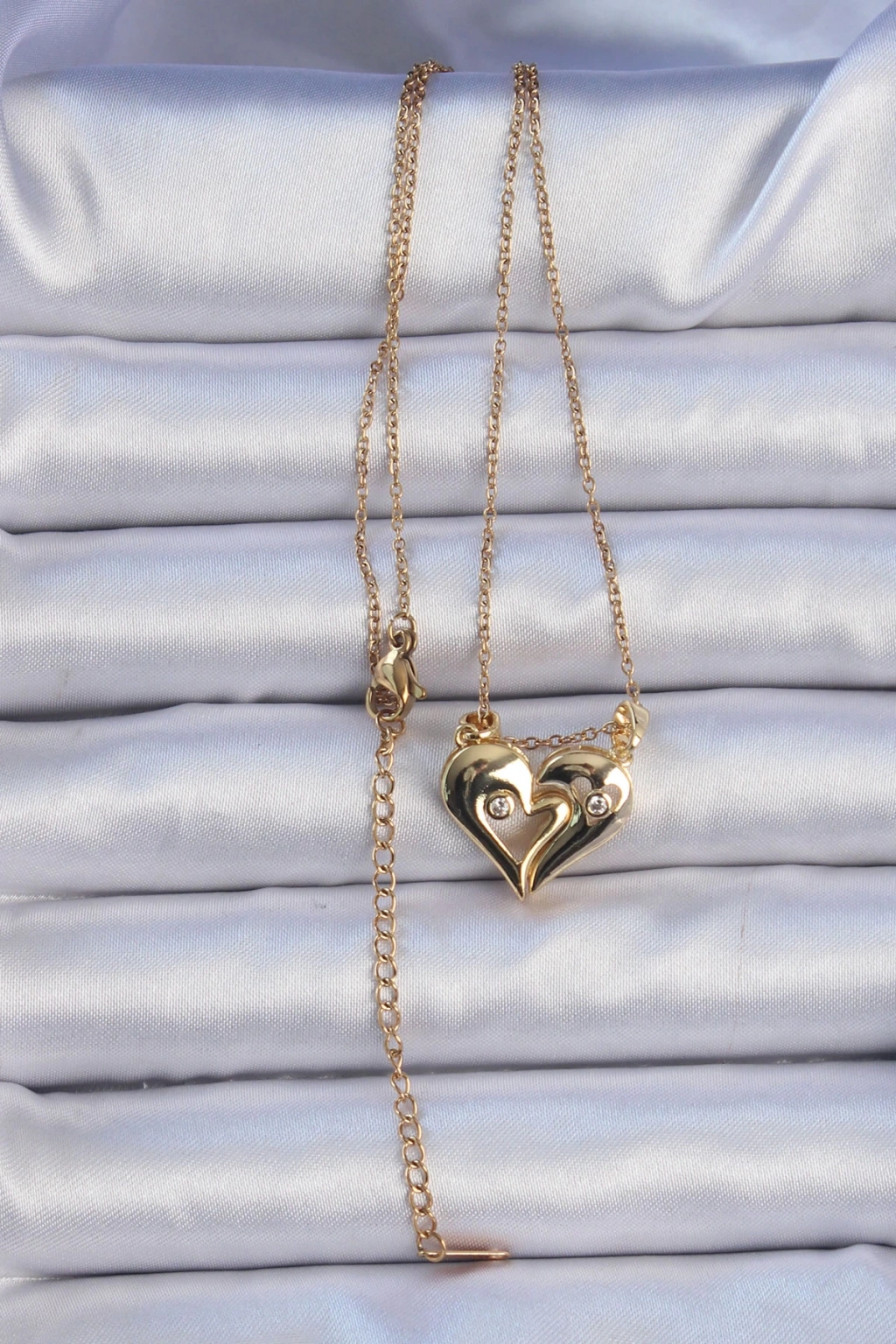 316L Çelik Zincir Altın Renk Zirkon Taşlı Mıknatıslı Kalp Kolye - TJ-BKO9081
