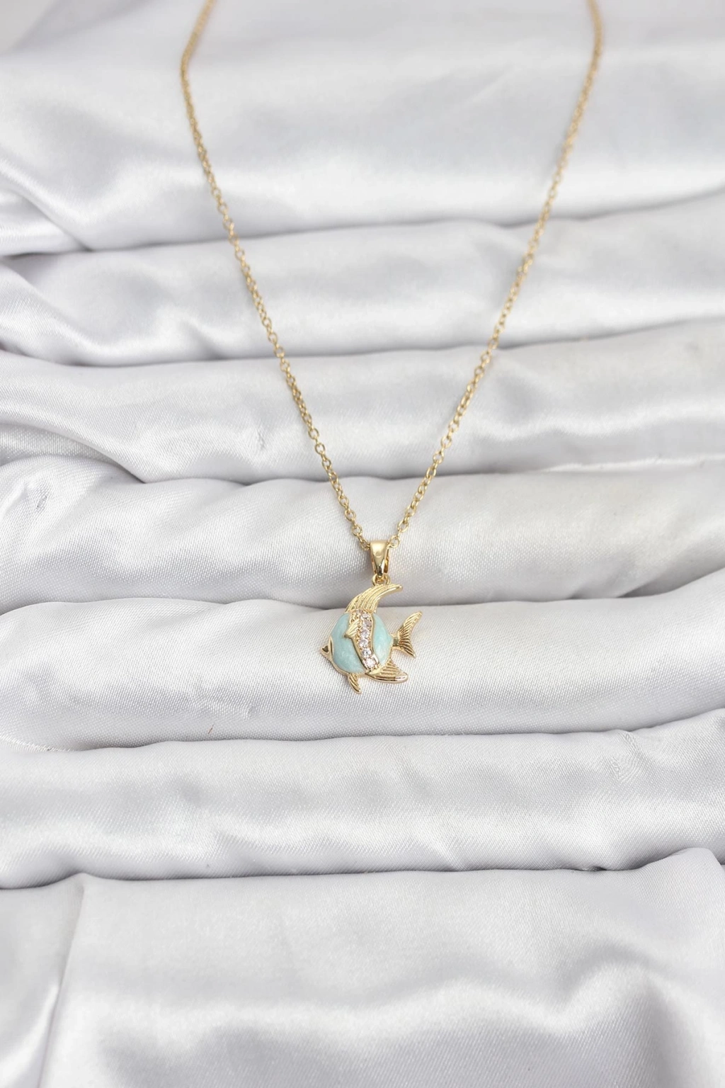 316L Çelik Zincir Gold Renk Balık Model Zirkon Taşlı Kadın Kolye - TJ-BKO10846