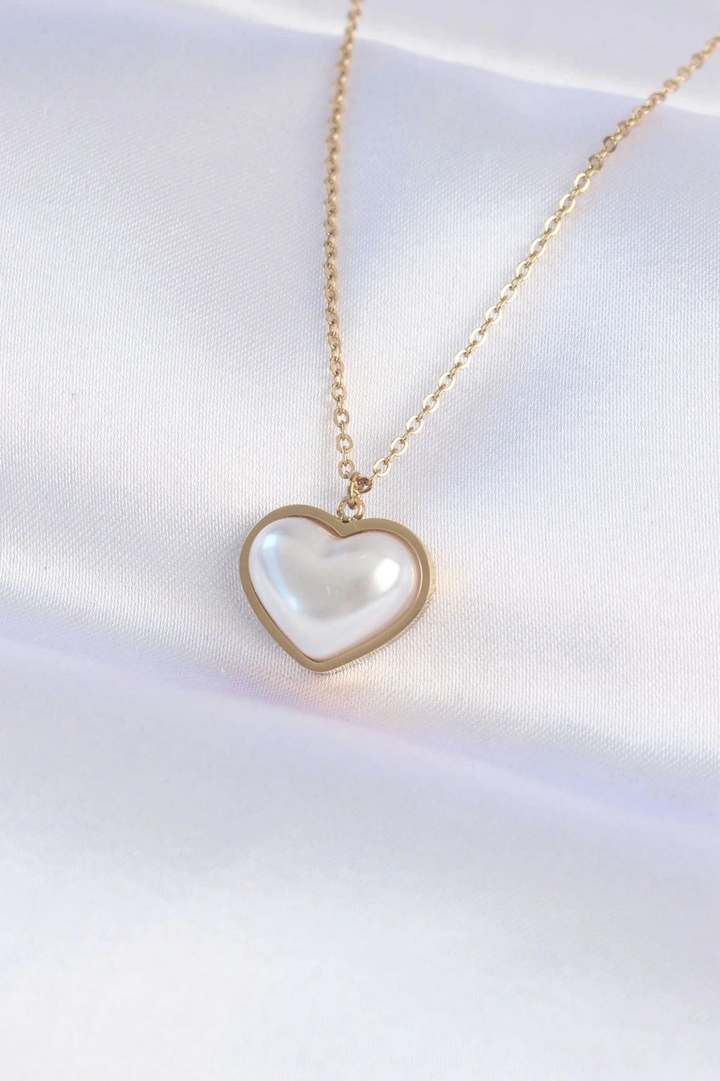 Kalp Detaylı Gold Renk Pirinç Kadın Kolye - TJ-BKO11009
