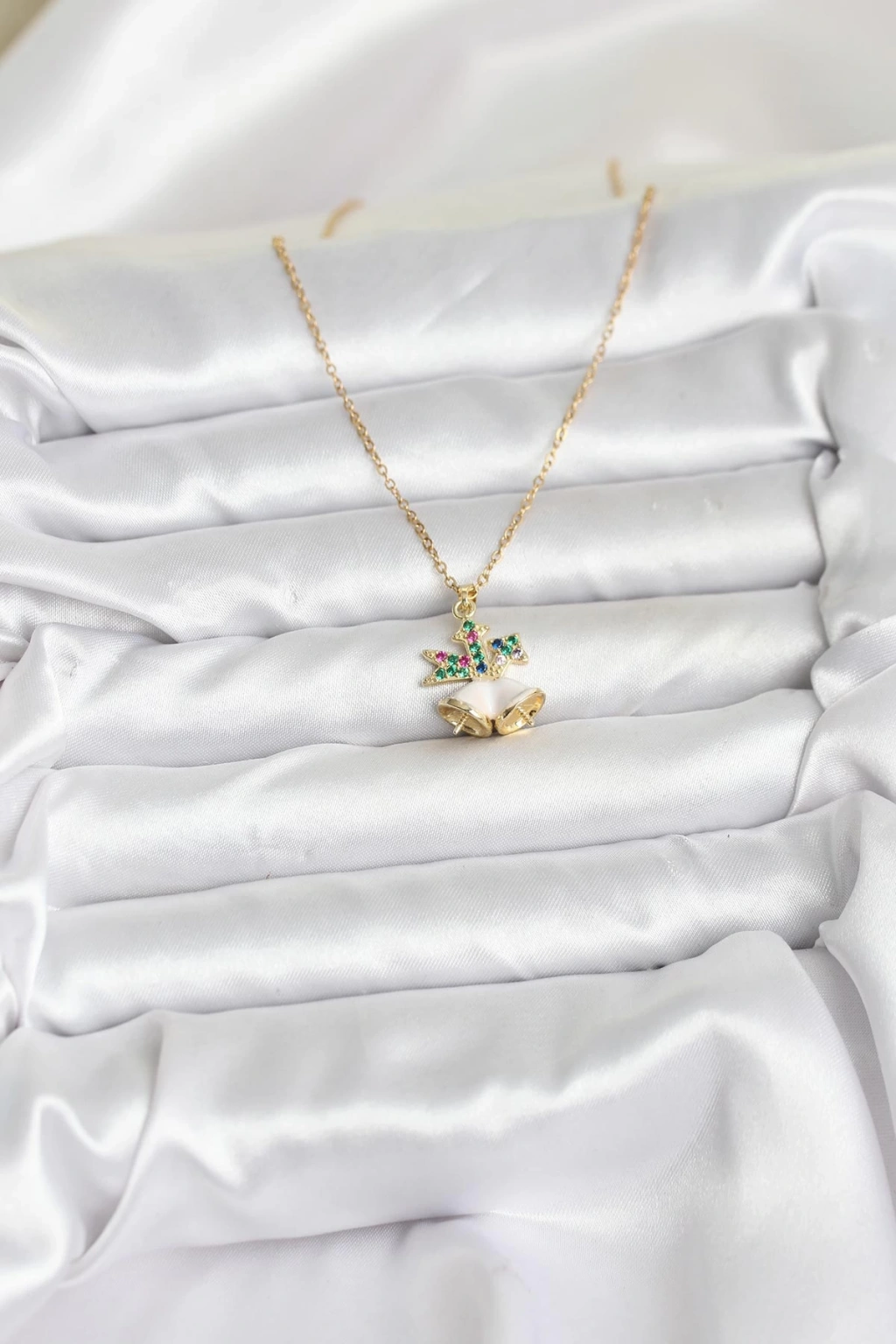 Kalp Detaylı Gold Renk Pirinç Kadın Kolye - TJ-BKO11009