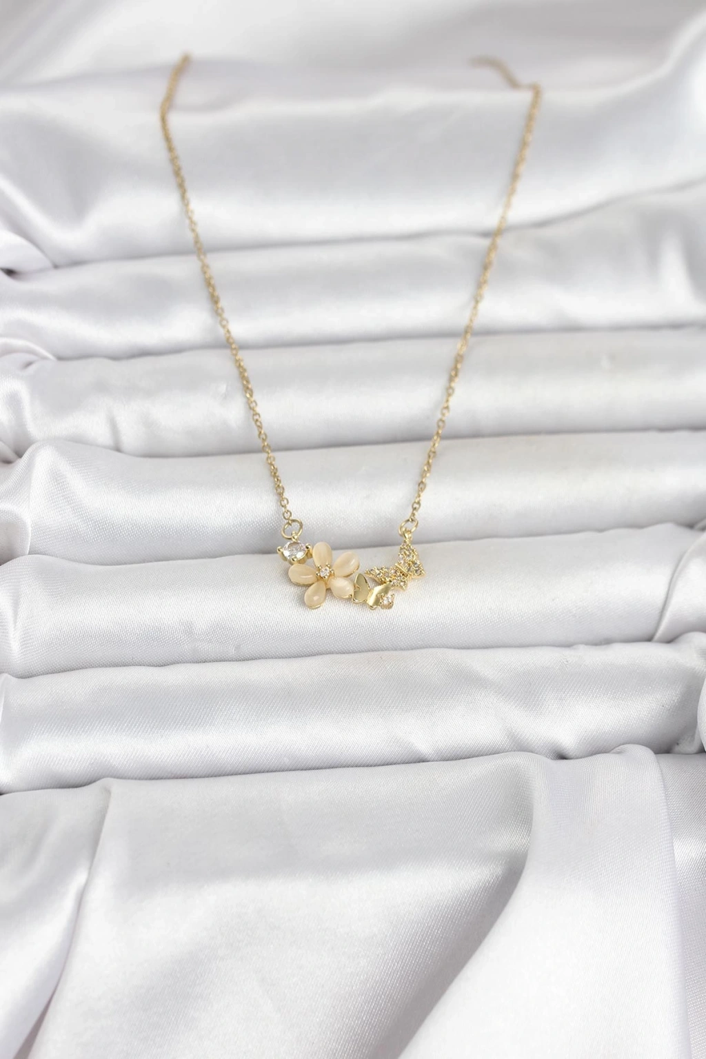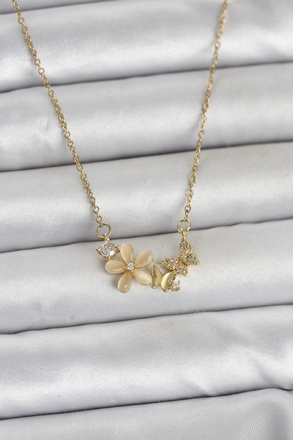 316L Çelik Zincir Gold Renk Çiçek ve Kelebek Model Kadın Kolye - TJ-BKO11038