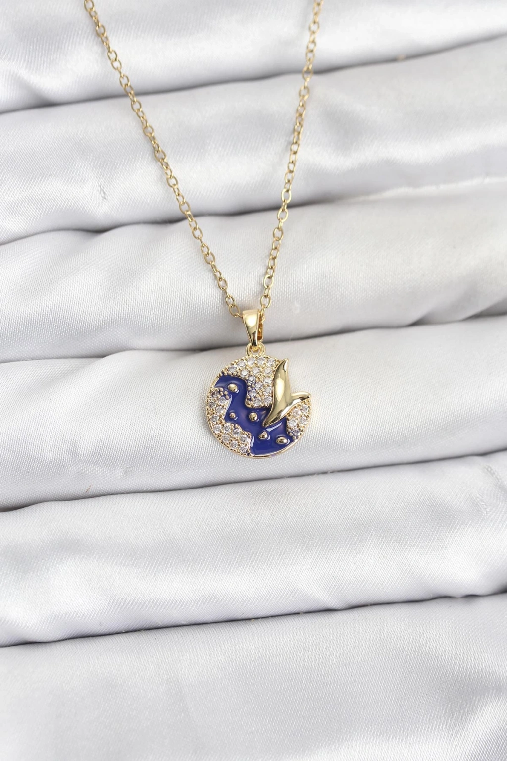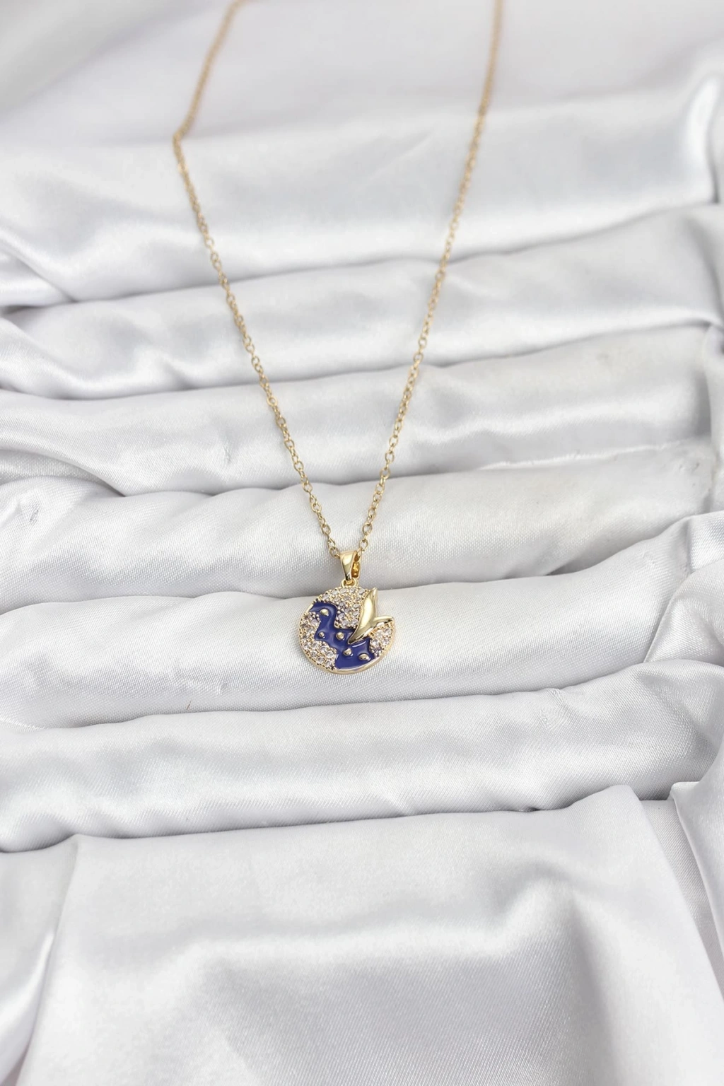 316L Çelik Zincir Gold Renk Gece Model Zirkon Taşlı Kadın Kolye - TJ-BKO10891