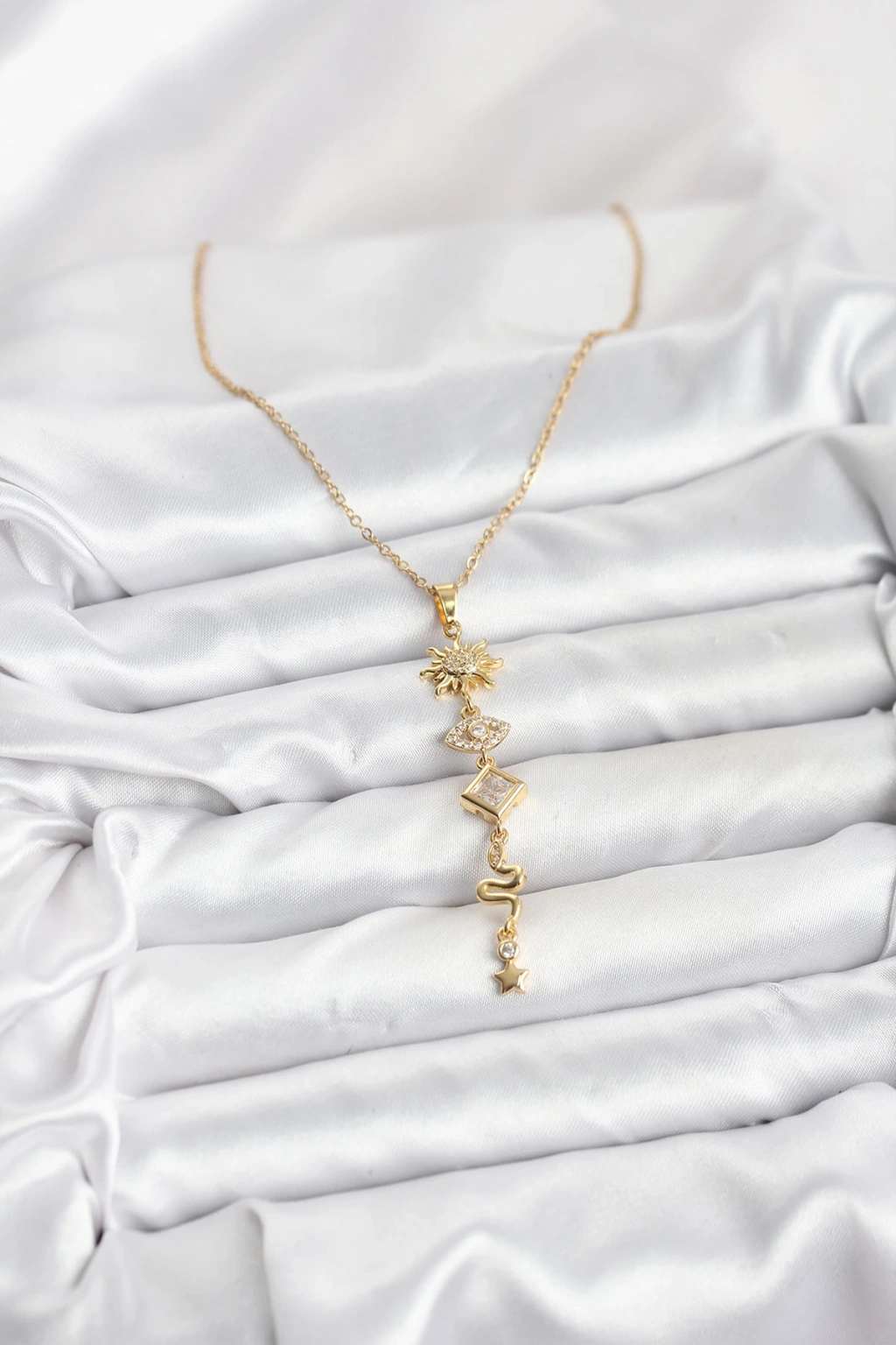 316L Çelik Zincir Gold Renk Güneş ve Enerji Model Kadın Y Kolye - TJ-BKO10668