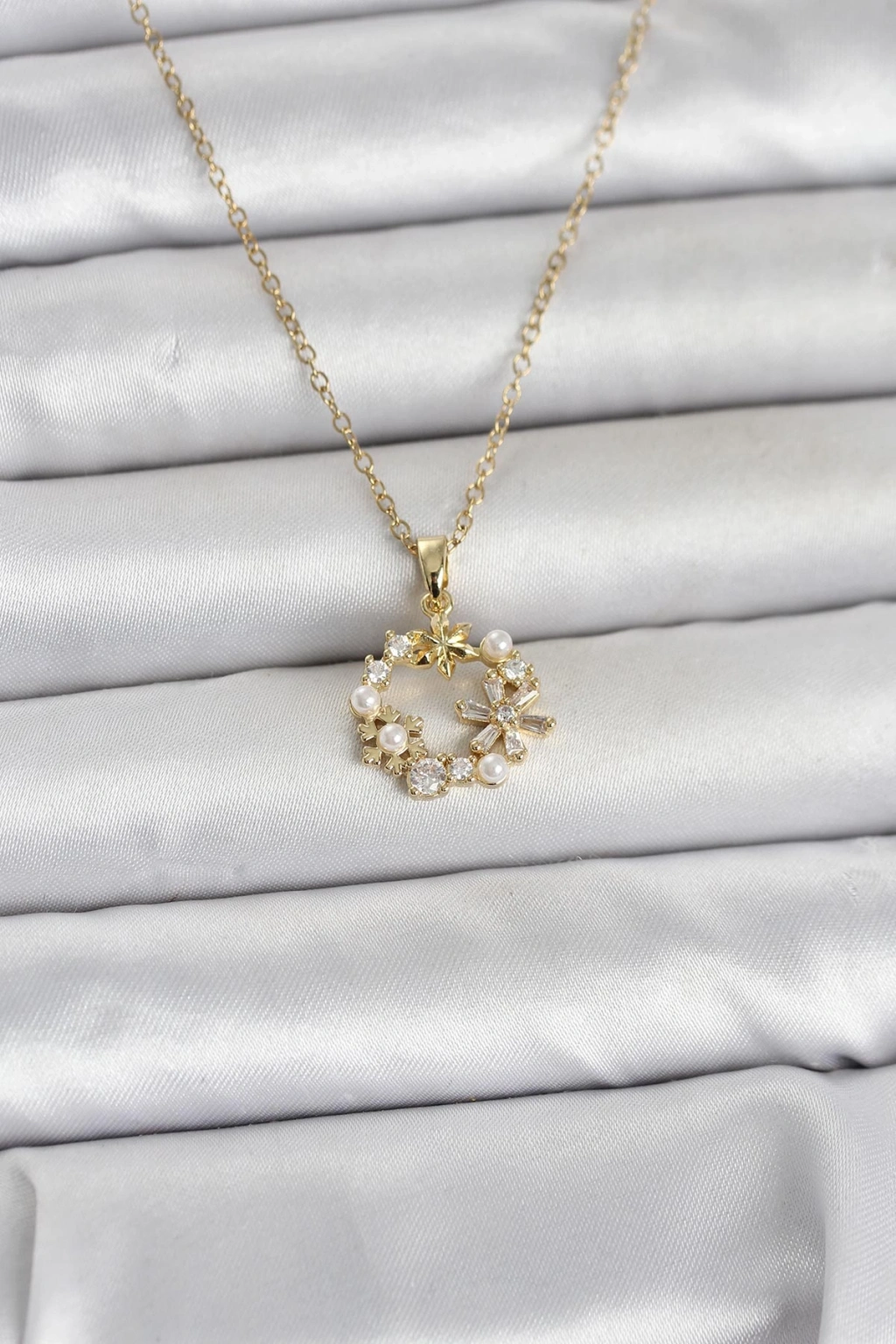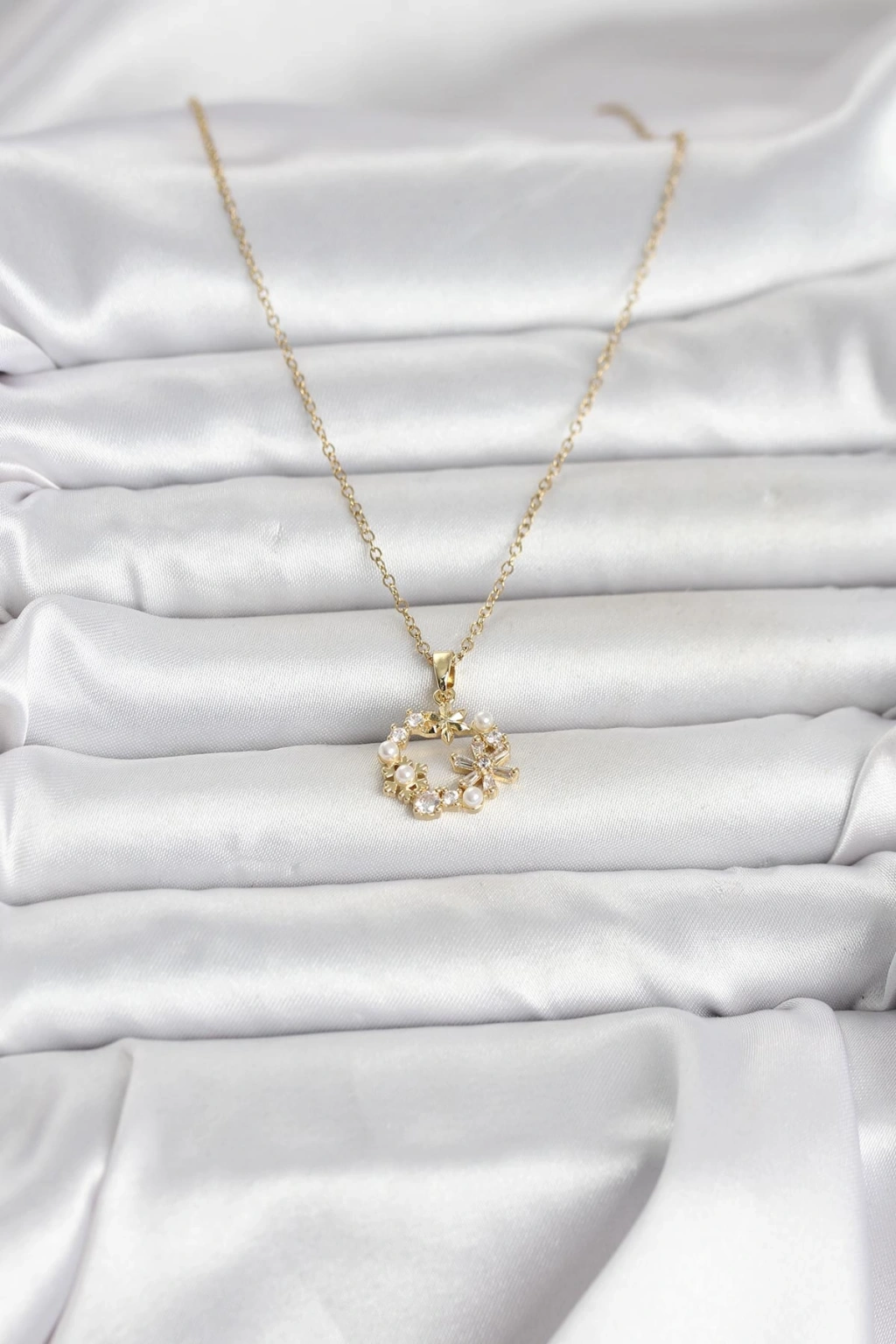 316L Çelik Zincir Gold Renk İncili Çiçek Model Kadın Koyle - TJ-BKO11034
