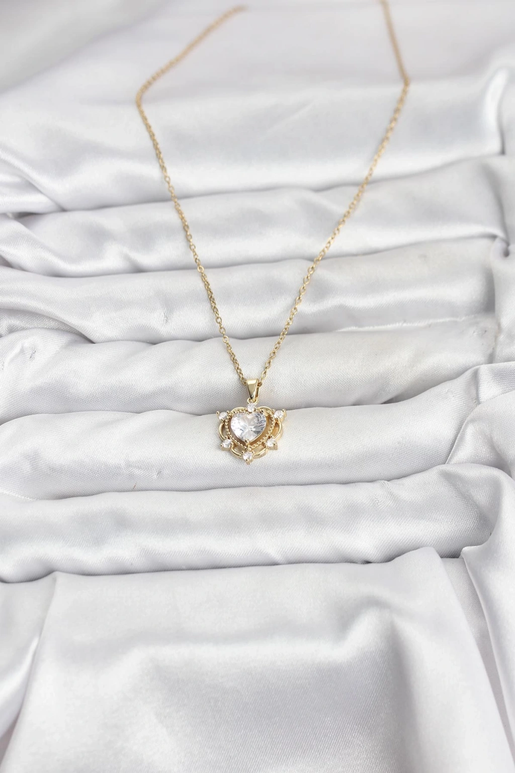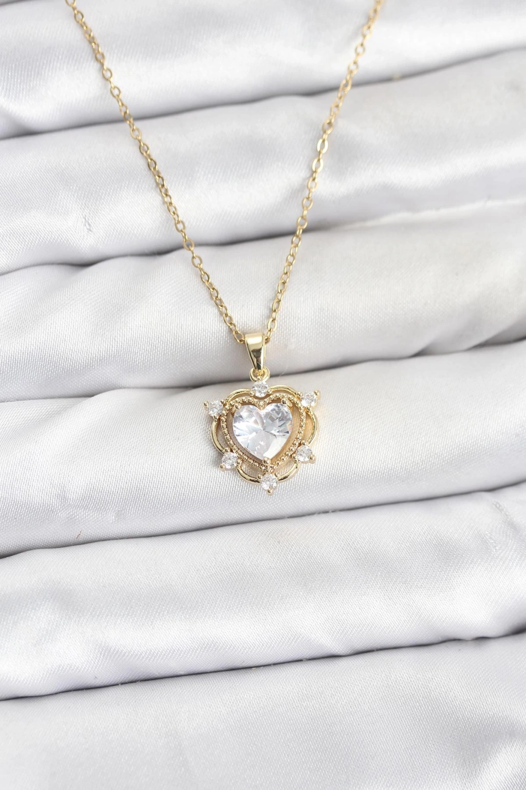 316L Çelik Zincir Gold Renk Kalp Model Zirkon Taşlı Kadın Kolye - TJ-BKO10883