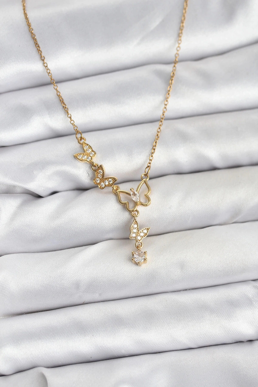 316L Çelik Zincir Gold Renk Kelebek Model Kadın Kolye - TJ-BKO10676