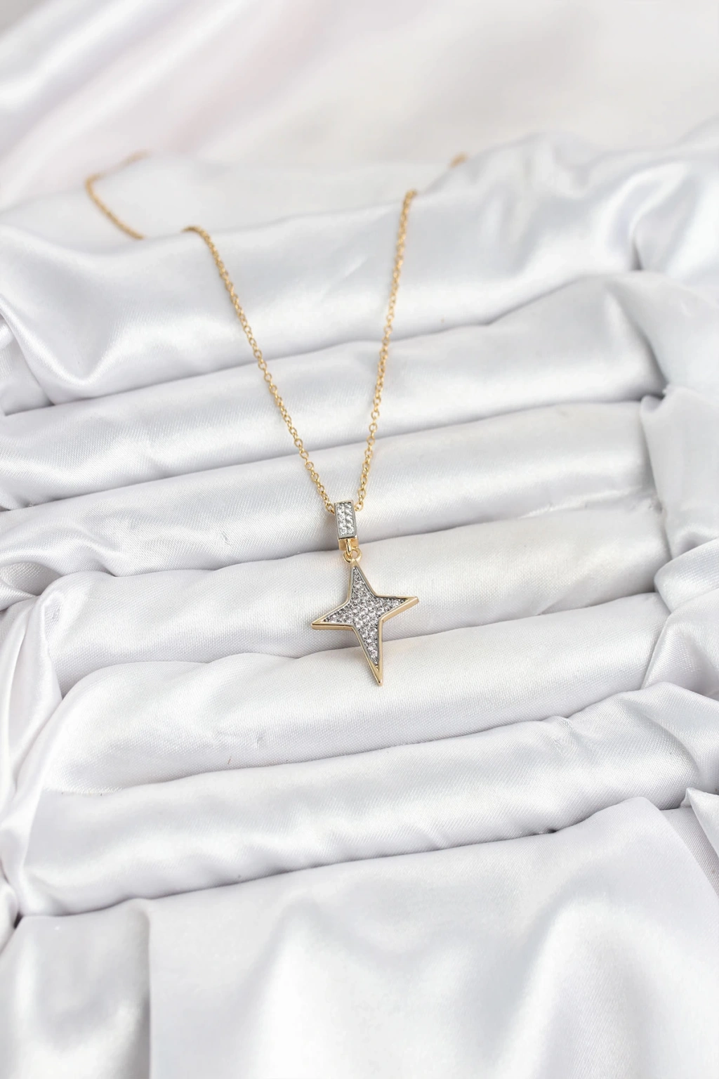 316L Çelik Zincir Gold Renk Kutup Yıldızı Model Zirkon Taşlı Kadın Kolye - TJ-BKO10610