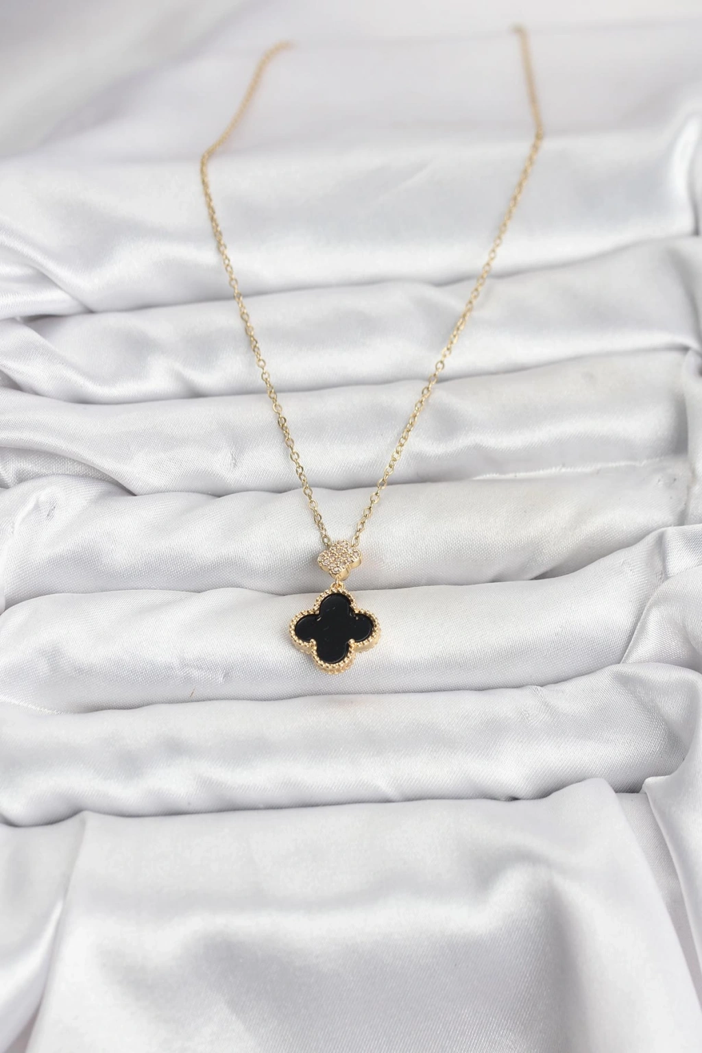 316L Çelik Zincir Gold Renk Yonca Model Zirkon Taşlı Kadın Kolye - TJ-BKO10863