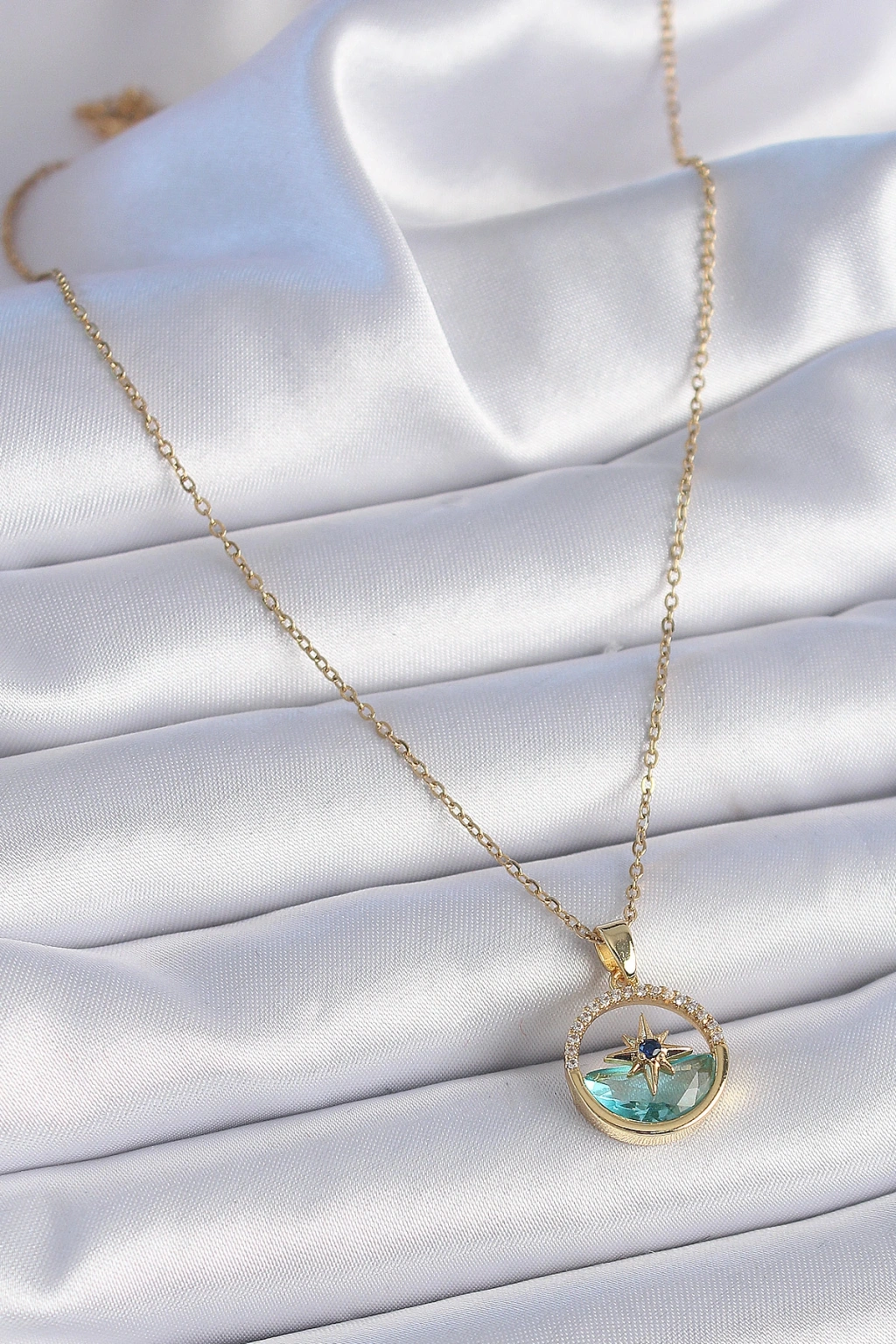 316L Çelik Zincir Gold Renk Zirkon Taşlı Deniz Görünüm Kutup Yıldız Model Kadın Kolye - TJ-BKO9358