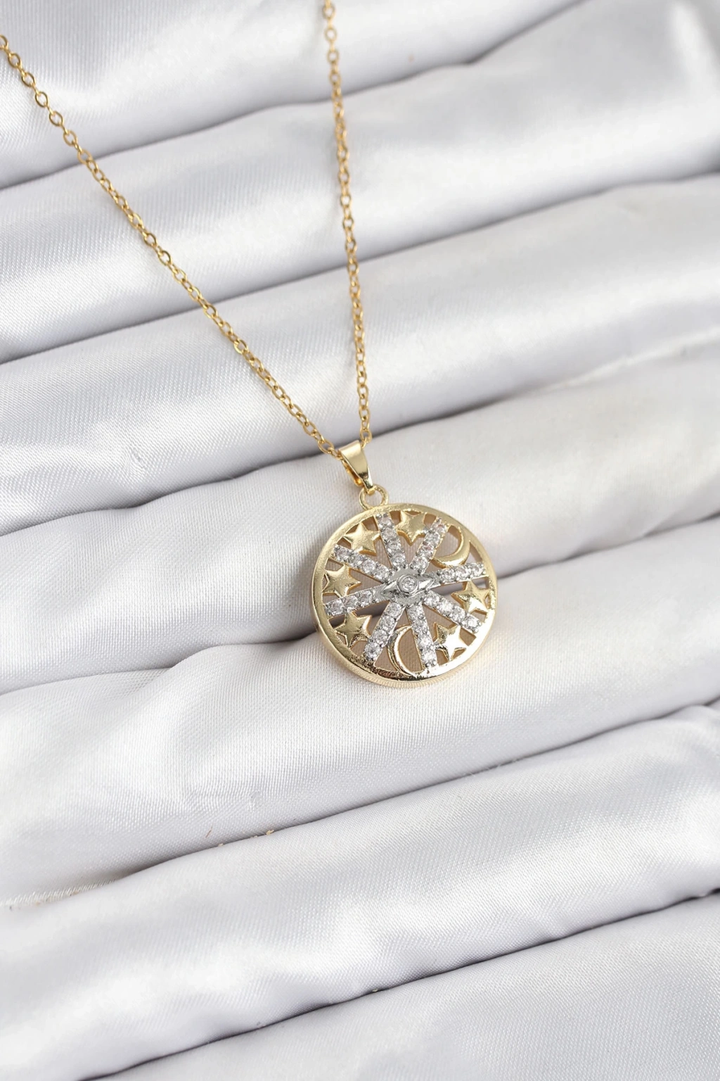 316L Çelik Gold Renk Zincir Oğlak Burcu Zirkon Taşlı Kadın Kolye - TJ-BKO9459