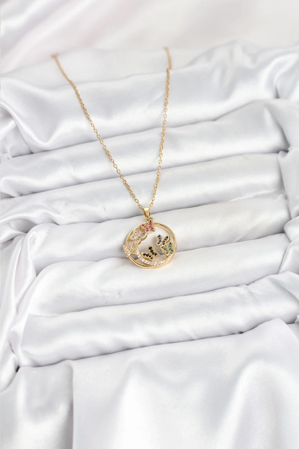 316L Çelik Zincir Gold Renk Zirkon Taşlı Kelebekli Kadın Kolye - TJ-BKO10609