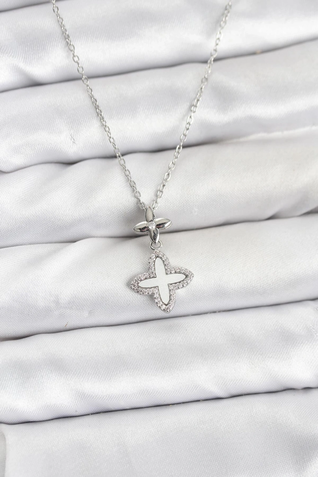 316L Çelik Zincir Gümüş Renk 4 Yapraklı Yonca Model Zirkon Taşlı Kadın Kolye - TJ-BKO10888