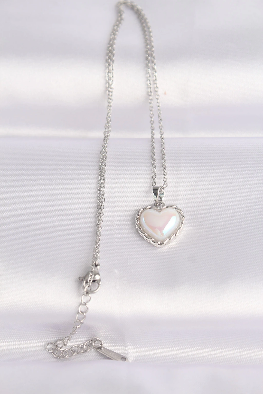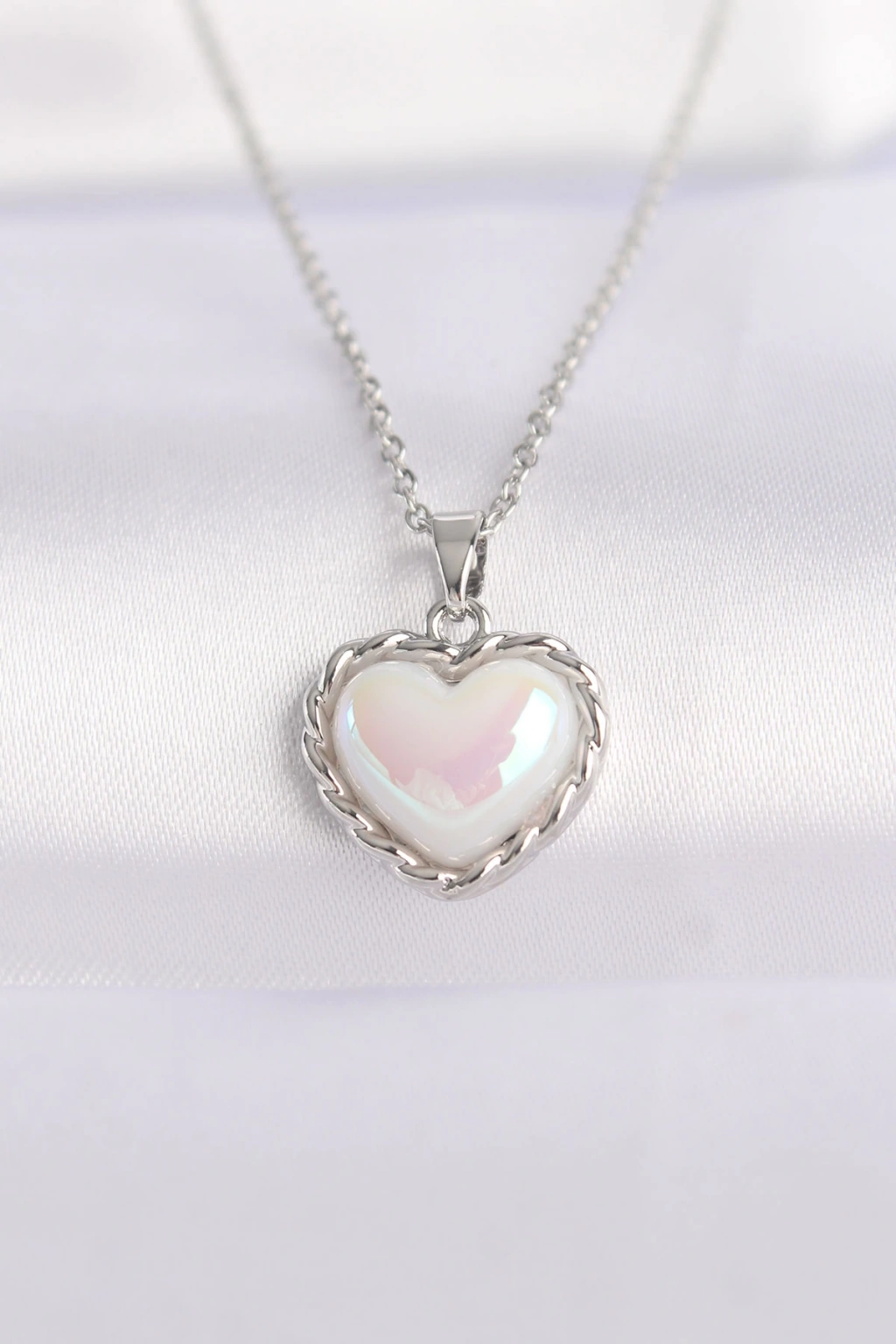 316L Çelik Zincir Gümüş Renk Beyaz Taşlı Bombeli Kalp Kolye - TJ-BKO8631