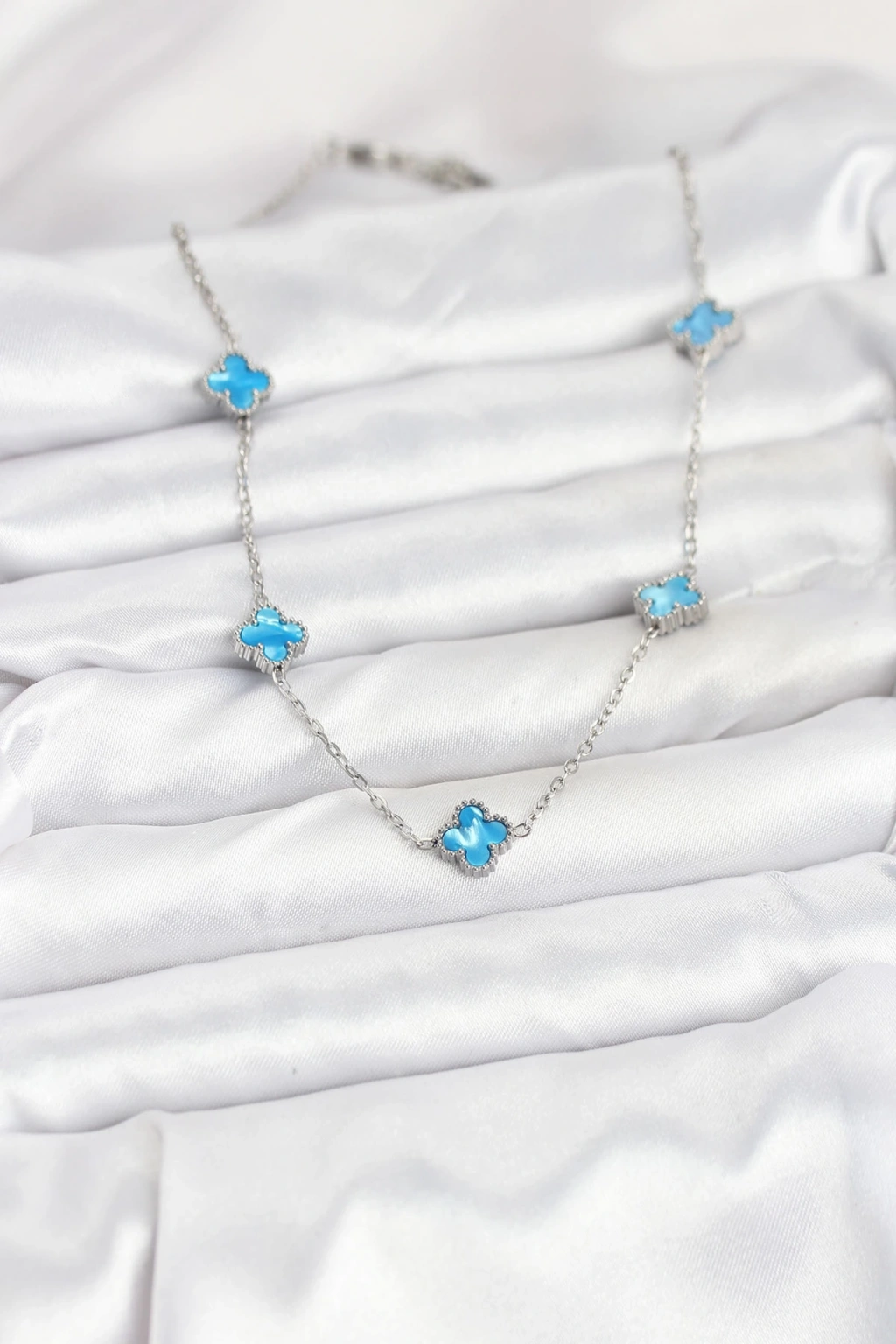 316L Çelik Zincir Gümüş Renk Buz Mavisi Baby Boy Yonca Kadın Kolye - TJ-BKO10576
