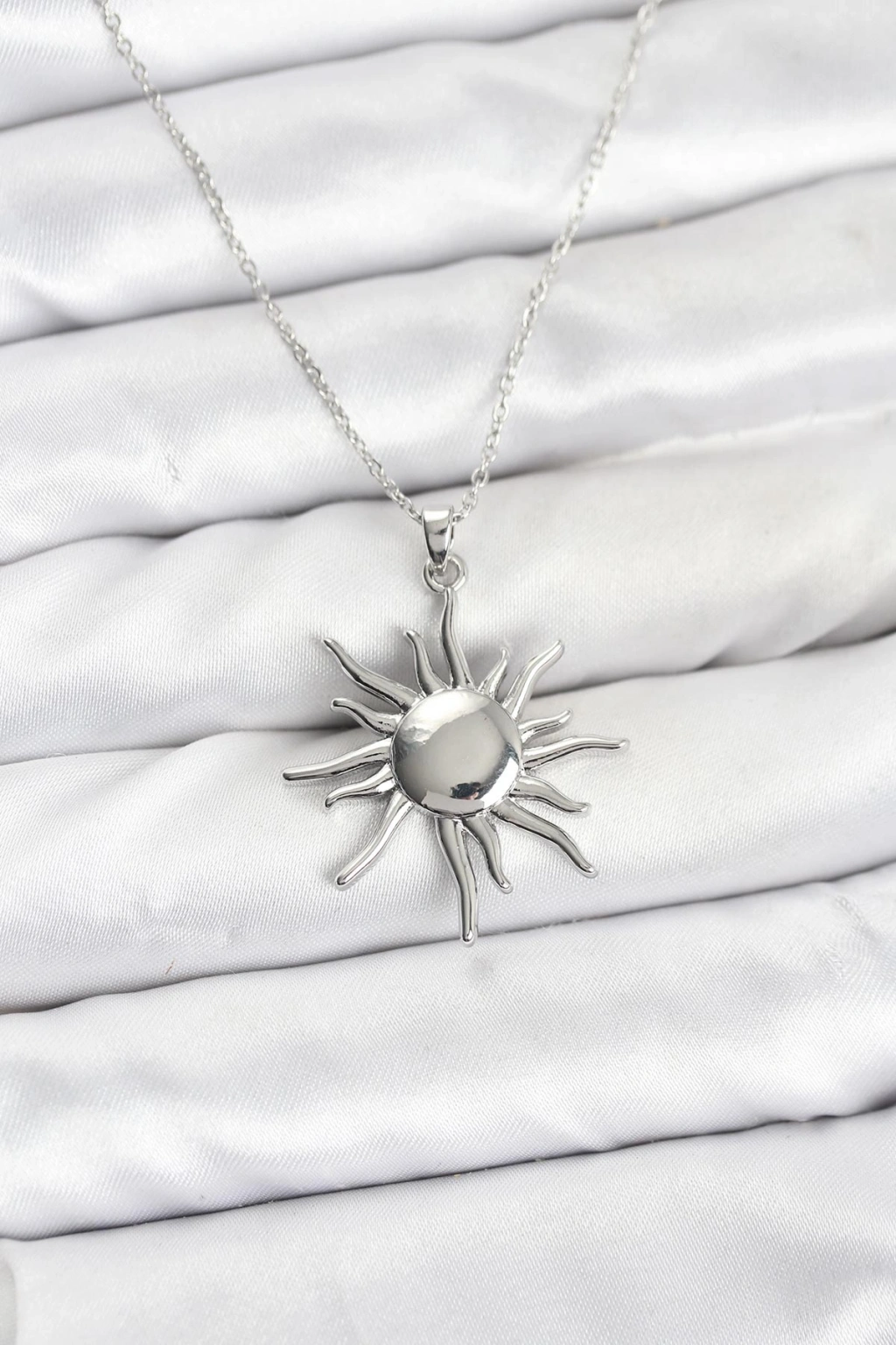 316L Çelik Zincir Gümüş Renk Güneş Model Kadın Kolye - TJ-BKO10900