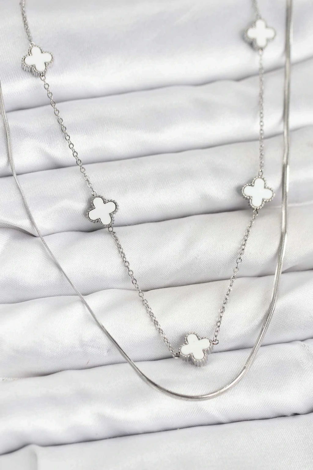 316L Çelik Zincir Gümüş Renk İtalyan Zincirli Yonca Model Kadın Kolye - TJ-BKO10779