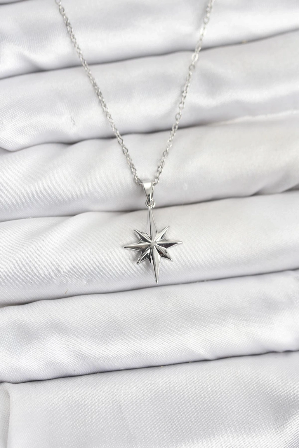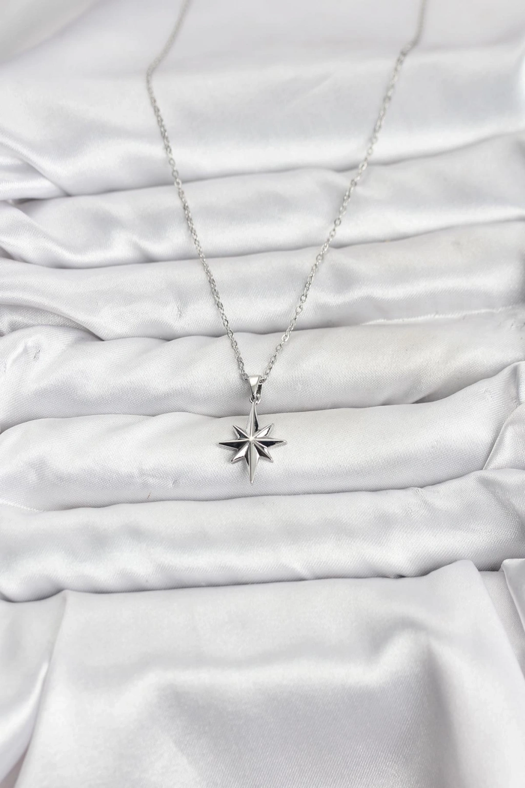316L Çelik Zincir Gümüş Renk Kutup Yıldızı Model Kadın Kolye - TJ-BKO10896